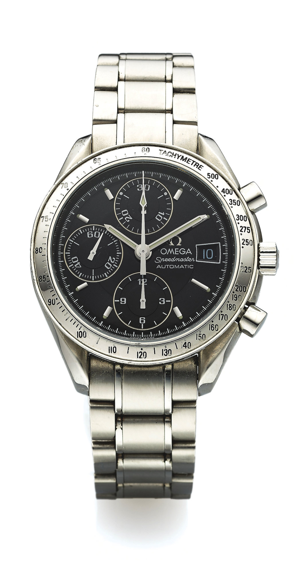 OMEGA REF. 175.0083 SPEEDMASTER AUTOMATIC STEEL Omega, Speedmaster, Automatic, Ref. 175.0083. Made in the 1990s. Fine, self-winding, water-resistant, stainless steel wristwatch with round button chronograph, registers, date and a stainless steel Omega link bracelet with deployant clasp.
