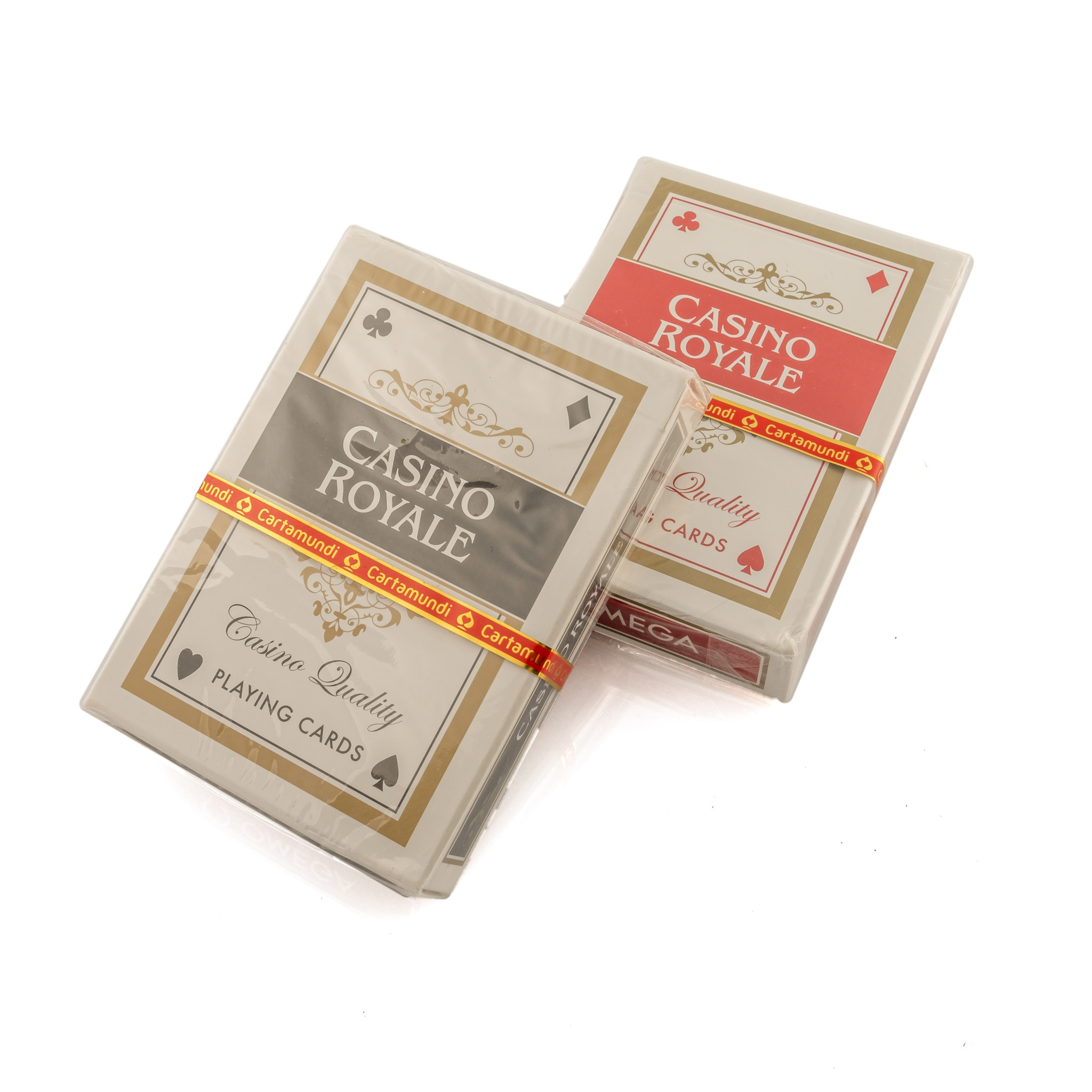 Two sets of “Casino Quality” playing cards titled “Casino Royale”, new still in cellophane.