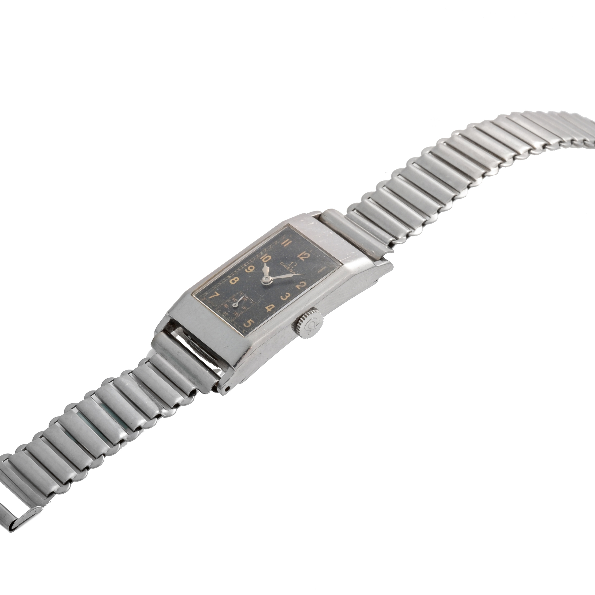 OMEGA, RECTANGULAR, BLACK DIAL, STEEL