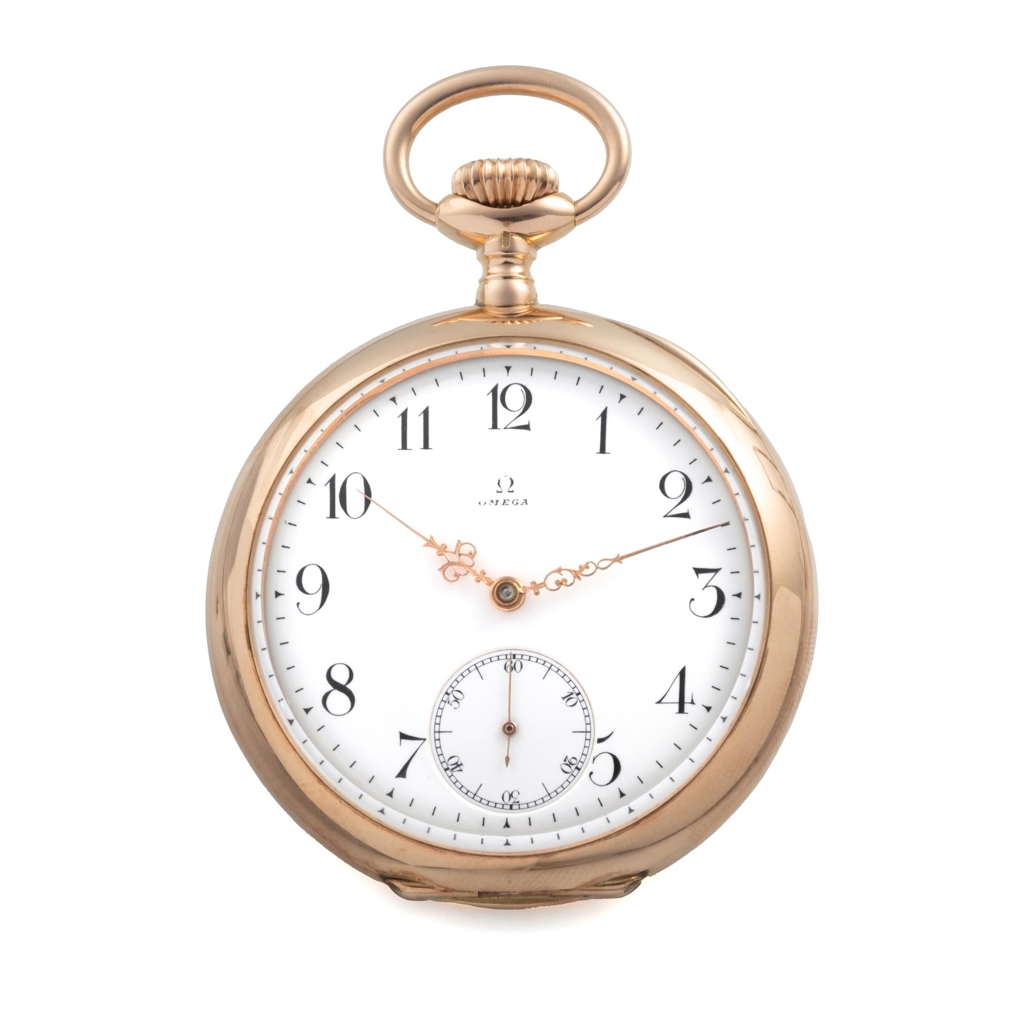 OMEGA, SWITZERLAND, OPEN-FACE POCKET WATCH, 14K PINK GOLD