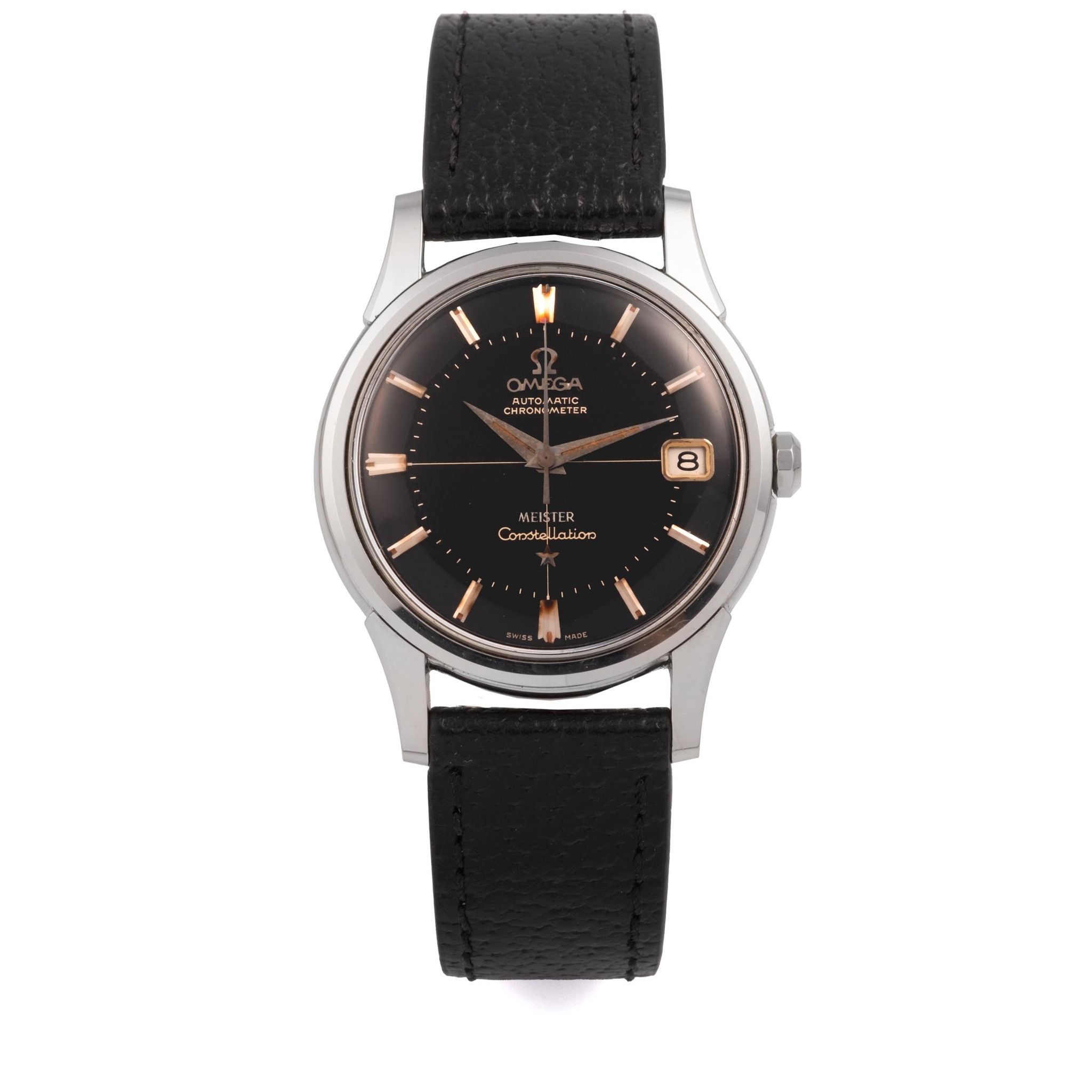 OMEGA, SWITZERLAND, REF. 14393 9 SC, CONSTELLATION, BLACK DIAL RETAILED BY MEISTER, STAINLESS STEEL