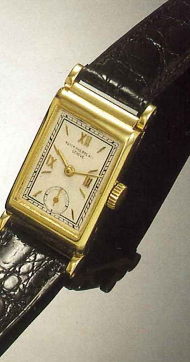 Patek Philippe & Cie, Genève, No. 831945, case No. 505003, circa 1936. Very fine rectangular, 18 ct. gold gentleman's wristwatch.