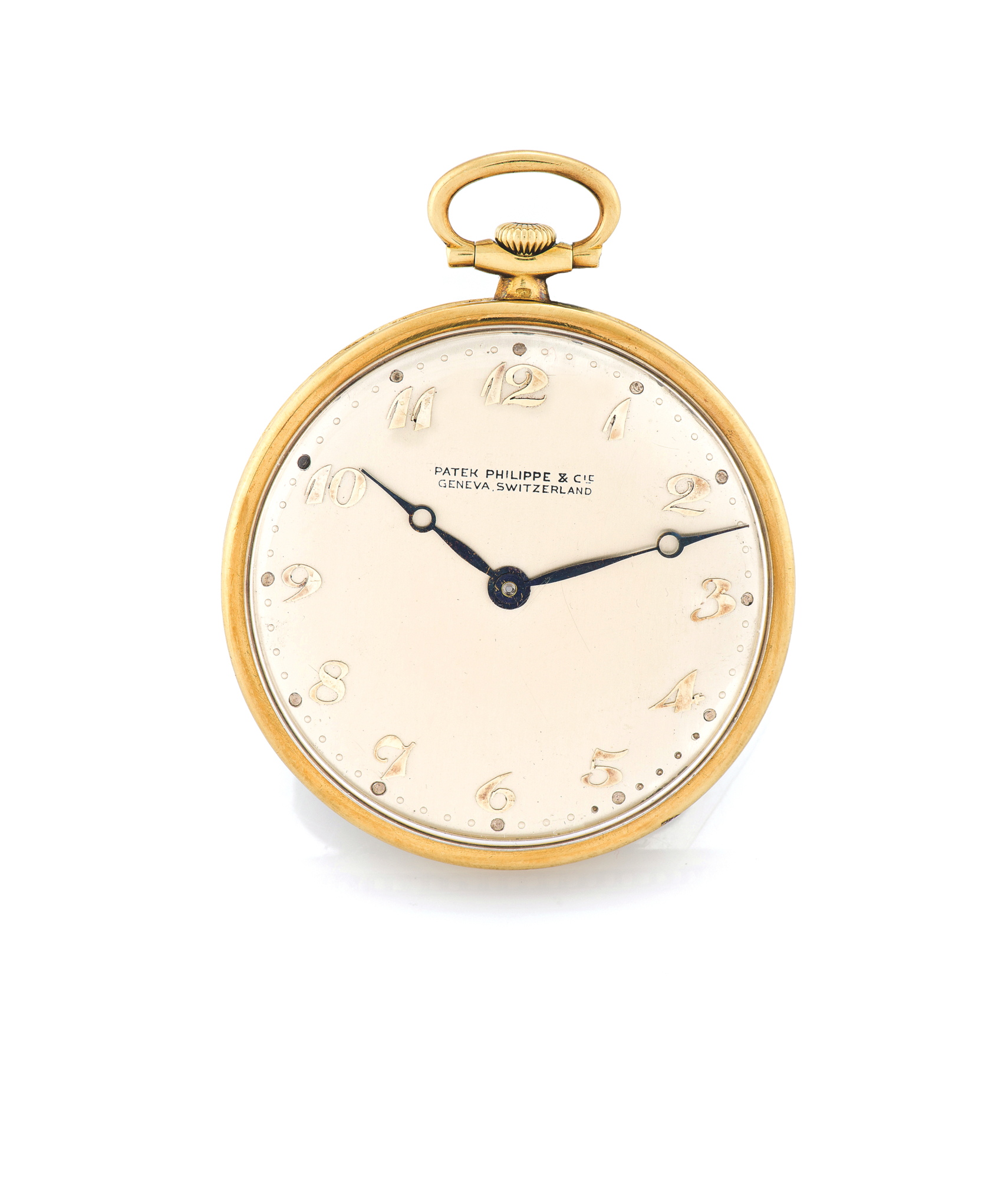 PATEK PHILIPPE PLATINUM & YELLOW GOLD DRESS WATCH, BREGUET NUMERALS Patek Philippe & Cie, Geneva, Switzerland, movement No. 814229, case No. 603324. Made for Grogan Company, Pittsburgh, Pa, circa 1928. Fine and rare, thin, two-color platinum and 18K yellow gold keyless dress watch with `Extra Quality` movement and Breguet numerals.