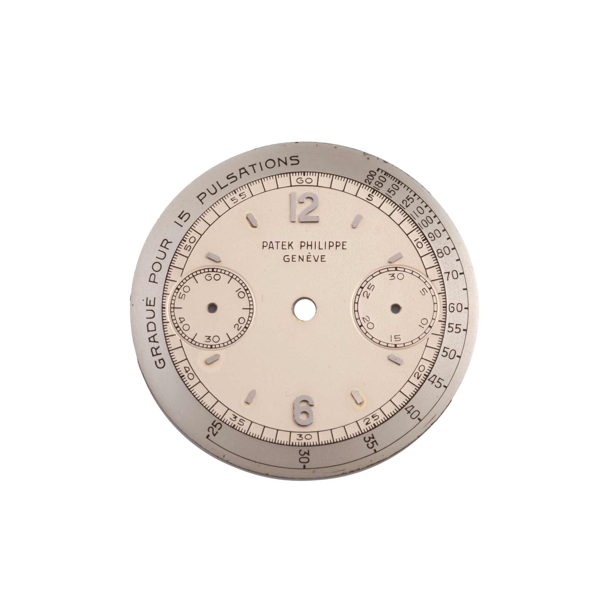 A very fine and extremely rare, brass dial for a steel/white gold/platinum Patek Philippe chronograph
