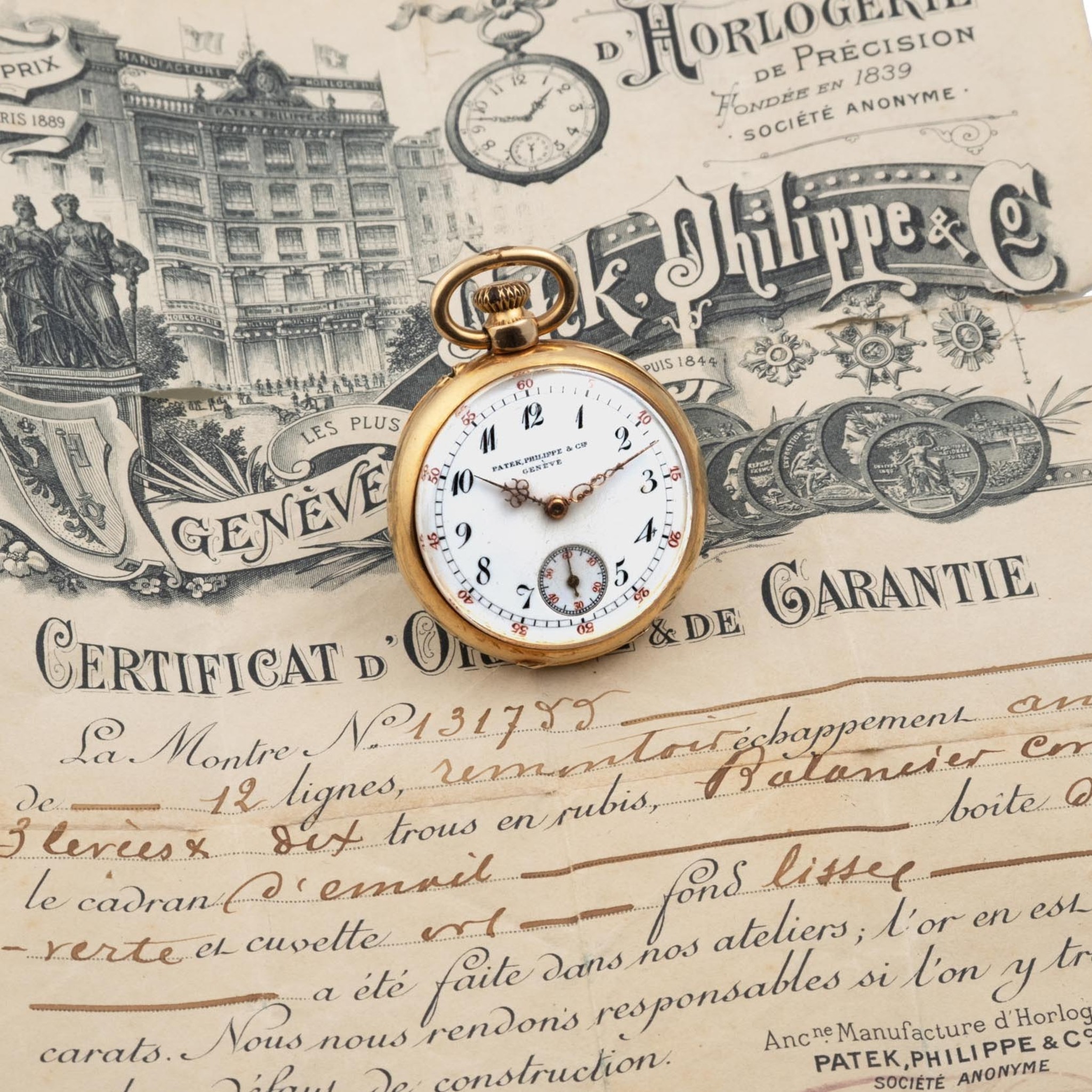 PATEK PHILIPPE, SWITZERLAND, ENAMEL DIAL, CERTIFICATE OF ORIGIN, 18K YELLOW GOLD