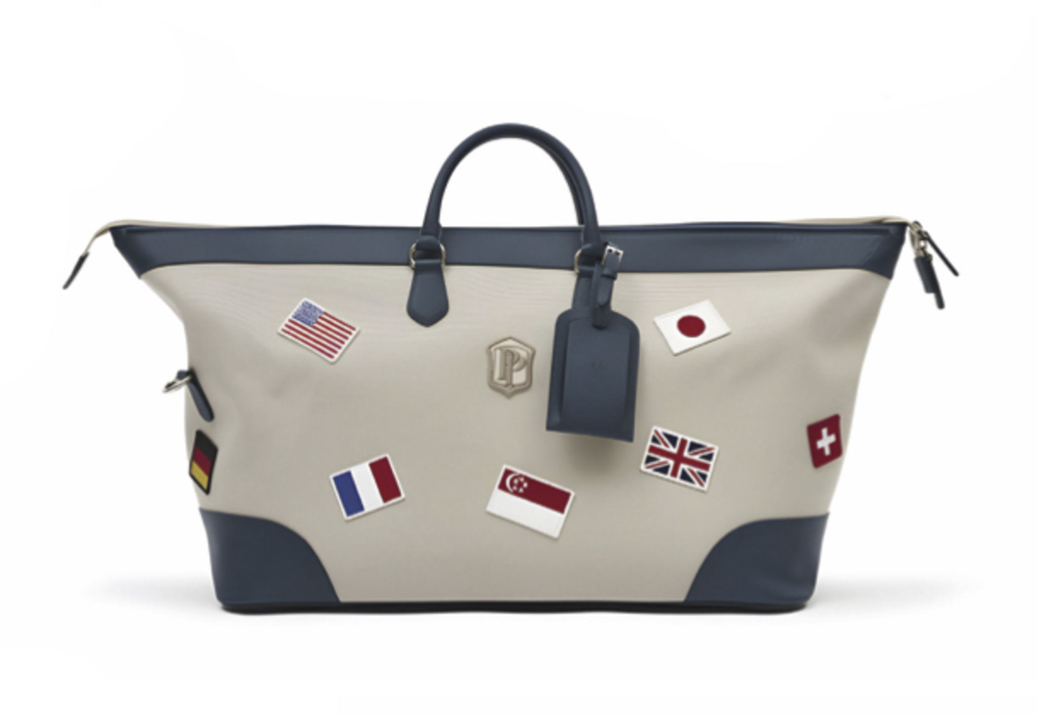 A set of 2 fabric and leather travel bags with a toiletries bag