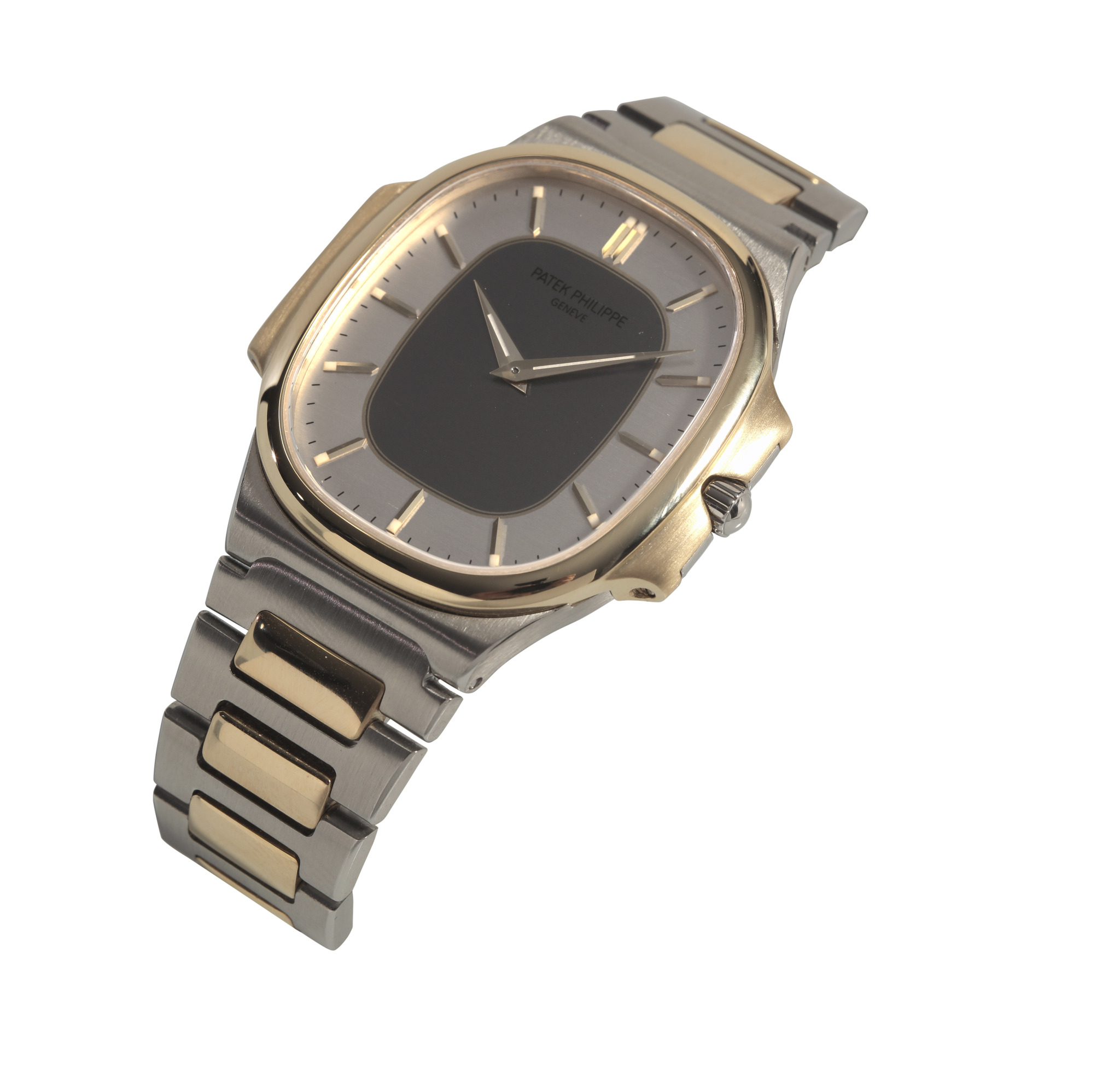 The case and integrated bracelet in steel and & 18K yellow gold remain clean and crisp, maintaining strong bevels and the original satin finish, with polished highlights enhancing the bracelet’s stepped construction. Powered by a highly precise quartz movement no. 1'506'612, this configuration reflects the forward-thinking approach Patek Philippe embraced in the late 1970s and early 1980s, bringing high-horology design to the emerging world of electronic calibers.