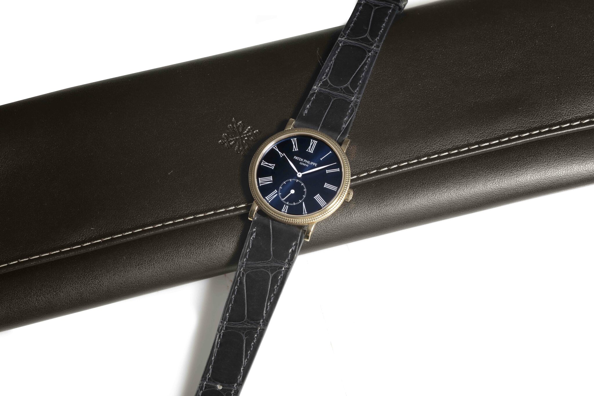 PATEK PHILIPPE, SWITZERLAND, REF. 3919J-015, CALATRAVA BLUE DIAL YELLOW GOLD