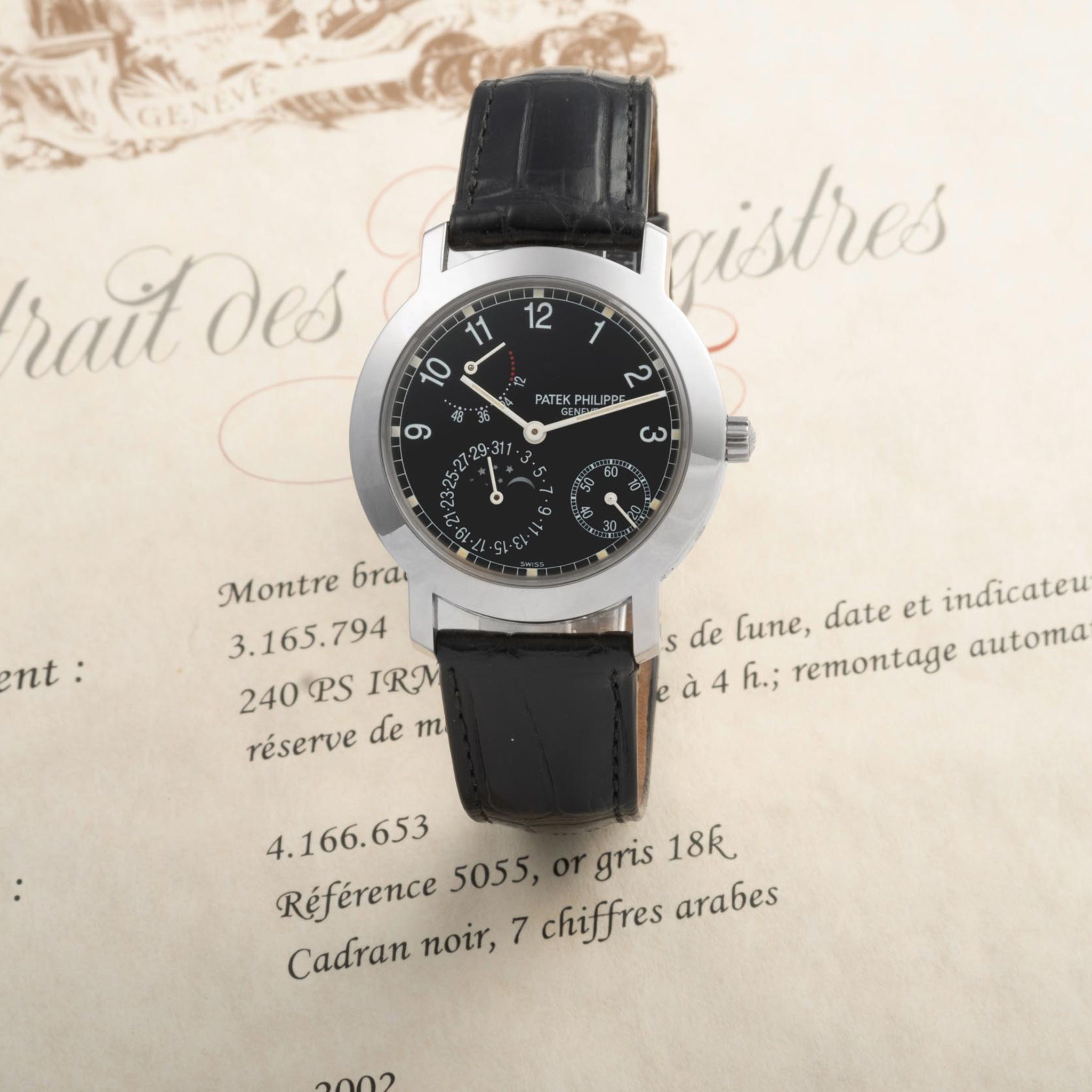 PATEK PHILIPPE, SWITZERLAND, REF. 5055G, CALATRAVA POWER RESERVE MOON PHASE WHITE GOLD