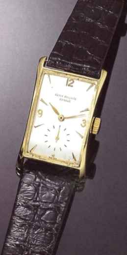 Patek Philippe & Cie, Genève, No. 839844, case No. 690386, Ref. 1593, 1950's. Very fine, curved and rectangular, 18ct gold gentleman's wristwatch.