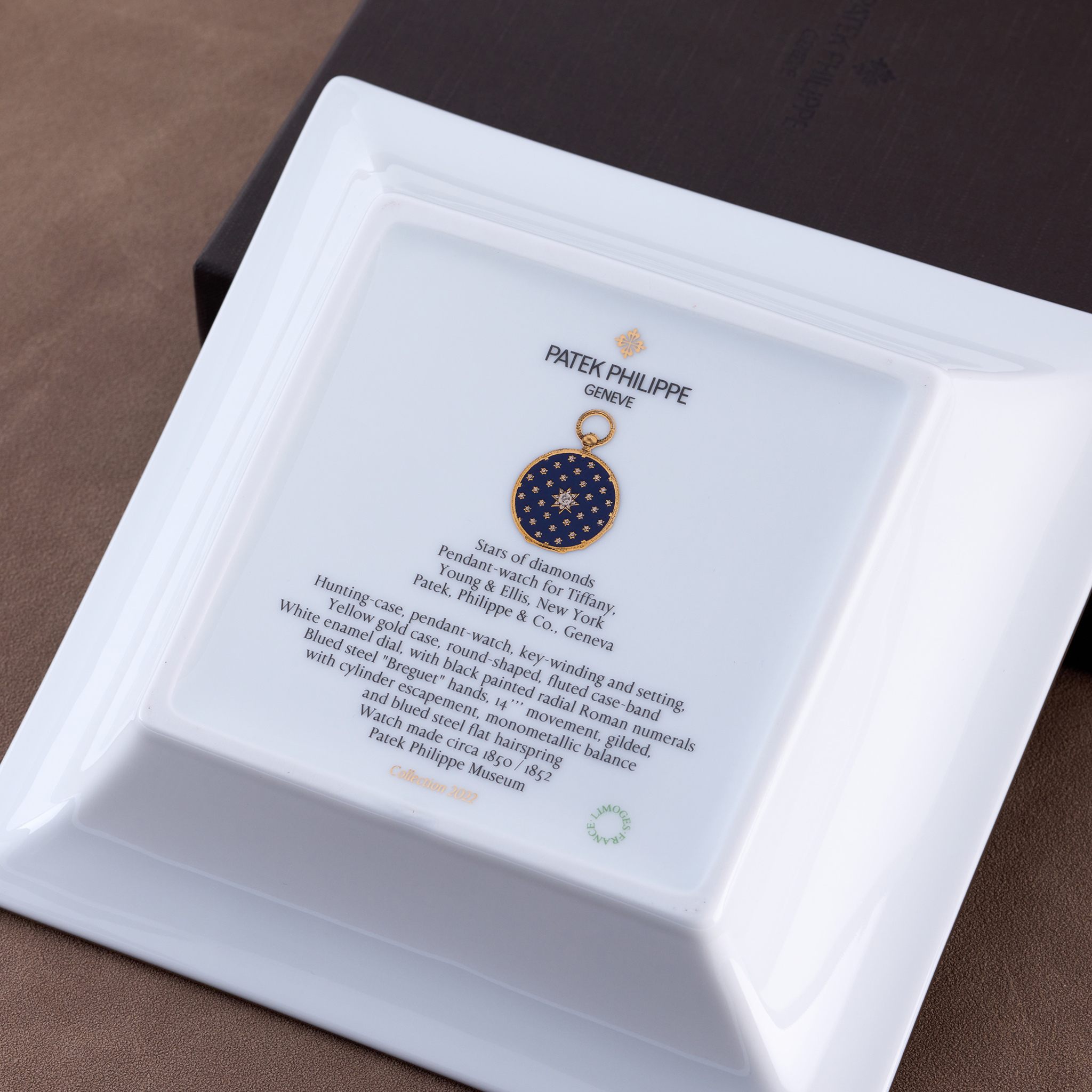 A limoges porcelain “vide-poche” with decoration inspired by ‘stars of diamonds’ hunting case, pendant watch for tiffany, young&ellis, new york, patek philippe & co., geneva from 1850 / 1852.