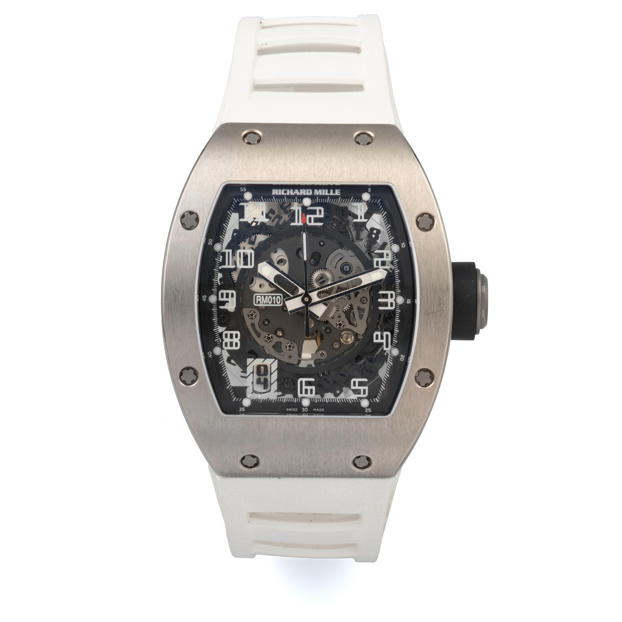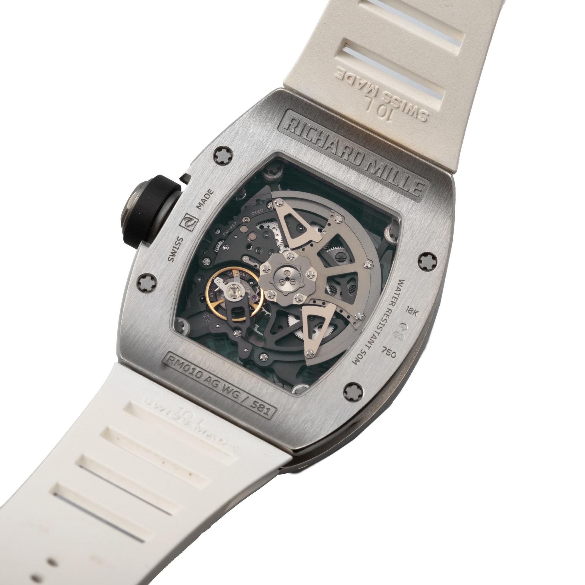 Worn on its white rubber strap, the RM010 in white gold balances sculptural presence with remarkable comfort, embodying the modern interpretation of luxury that Richard Mille pioneered. Combining technical ambition, distinctive design language and verified servicing provenance, the present watch stands as an exemplary representation of one of the most influential references in the brand’s early history, and a highly collectible piece within the evolving landscape of contemporary haute horlogerie.