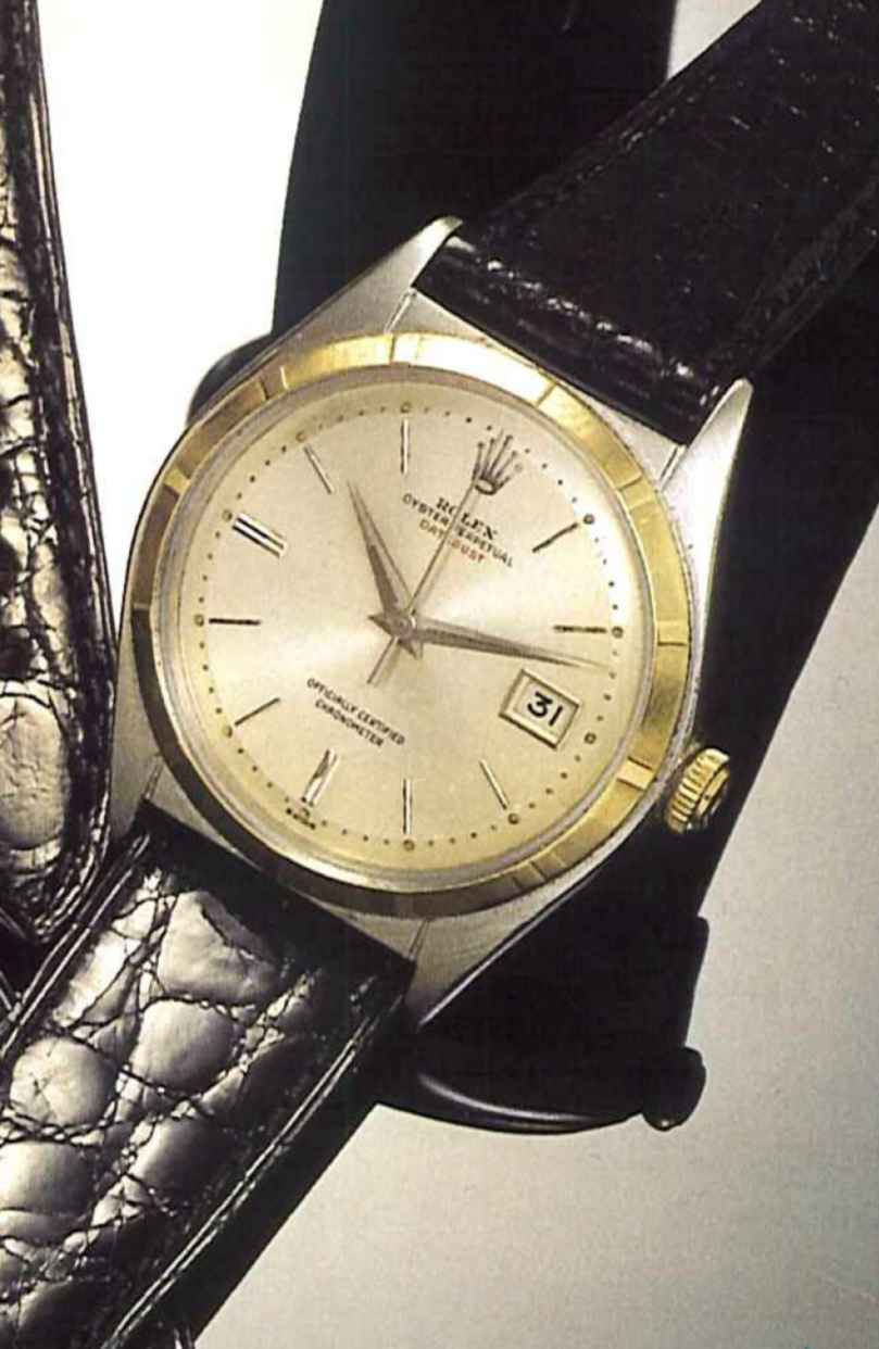 Rolex Oyster Perpetual "Datejust", Officially Certified Chronometer, Ref. 5031, 1960 's. Fine waterproof, tonneau shaped, centre second, self-winding, stainless steel and yellow gold gentleman's wristwatch with date.