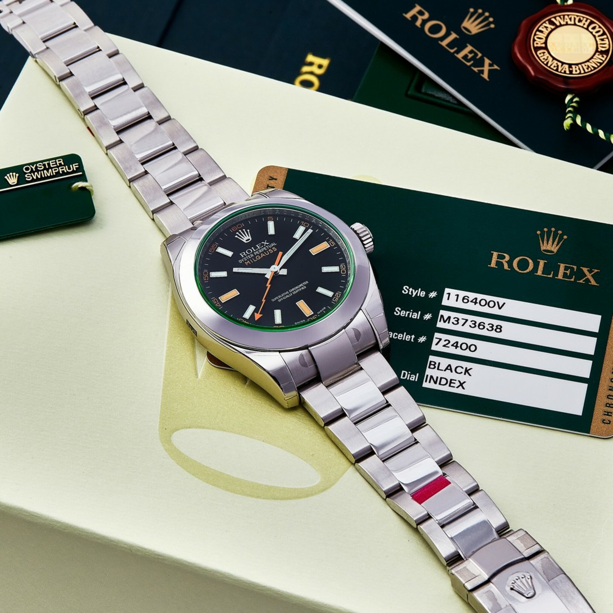 ROLEX, REF. 116400V, MILGAUSS, UNWORN, FULL FACTORY STICKERS, STEEL