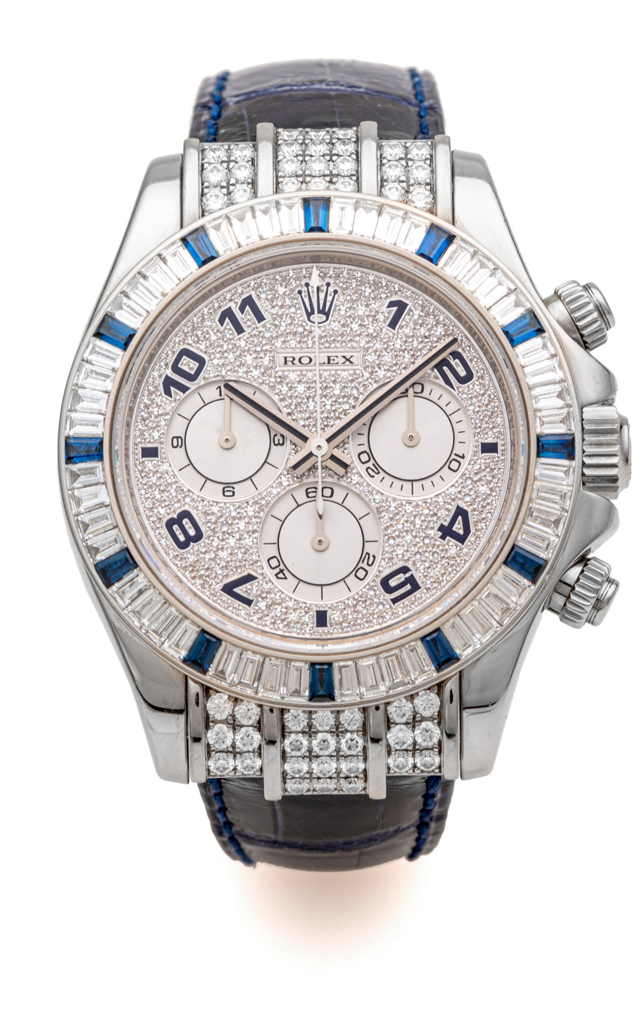 ROLEX REF. 116599, DAYTONA BAGUETTE DIAMOND AND SAPPHIRE WHITE GOLD