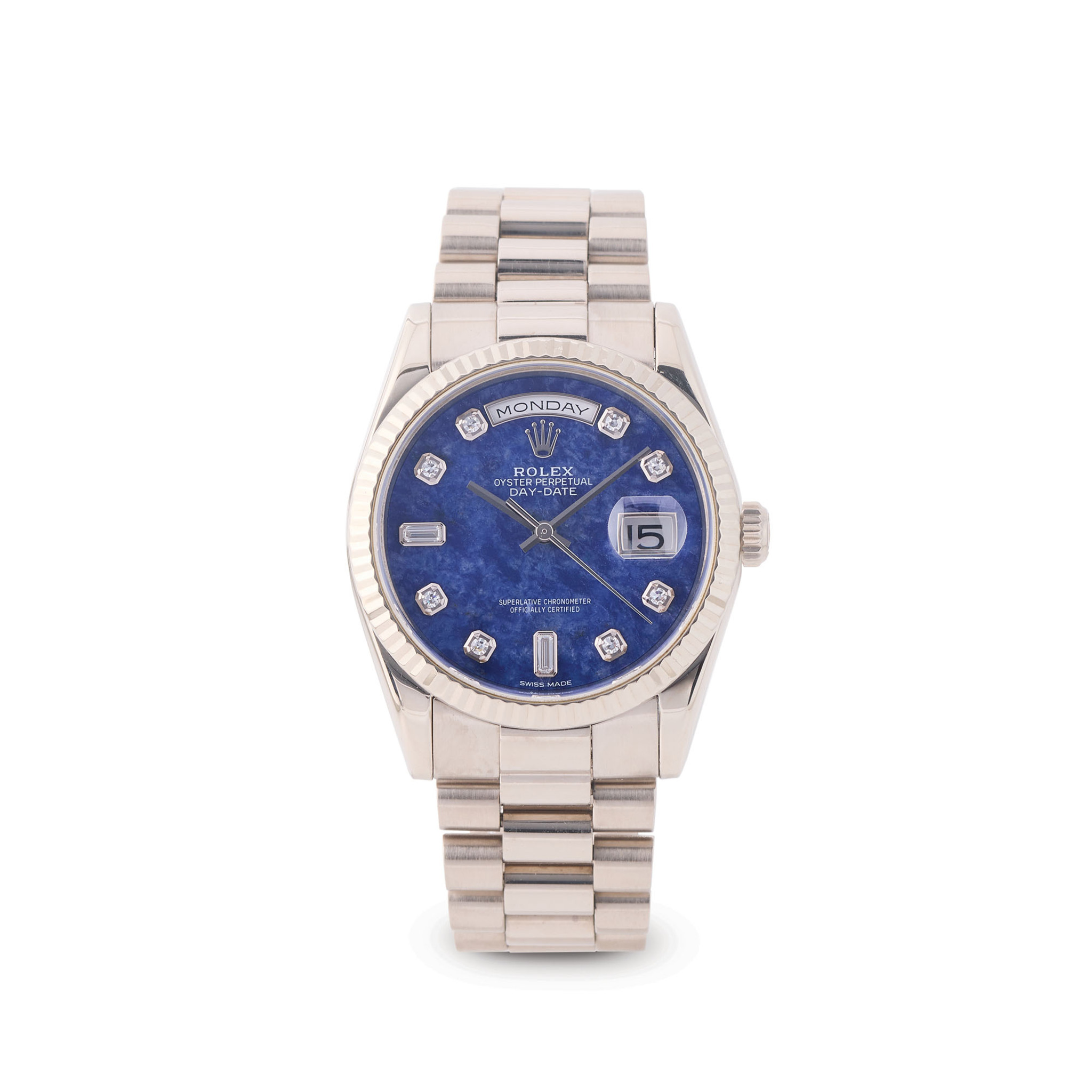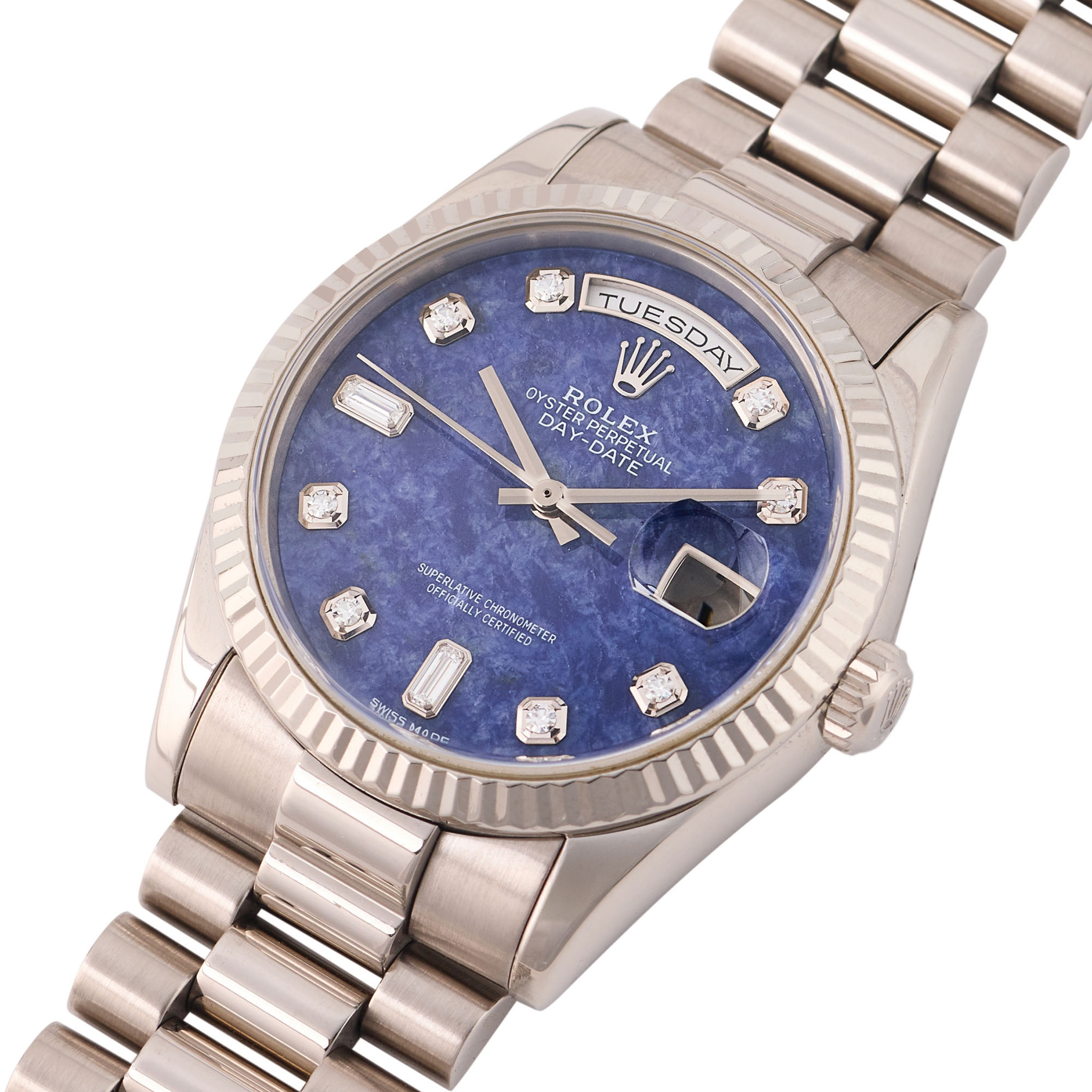 ROLEX, REF. 118239, DAY-DATE, SODALITE DIAL, 18K WHITE GOLD