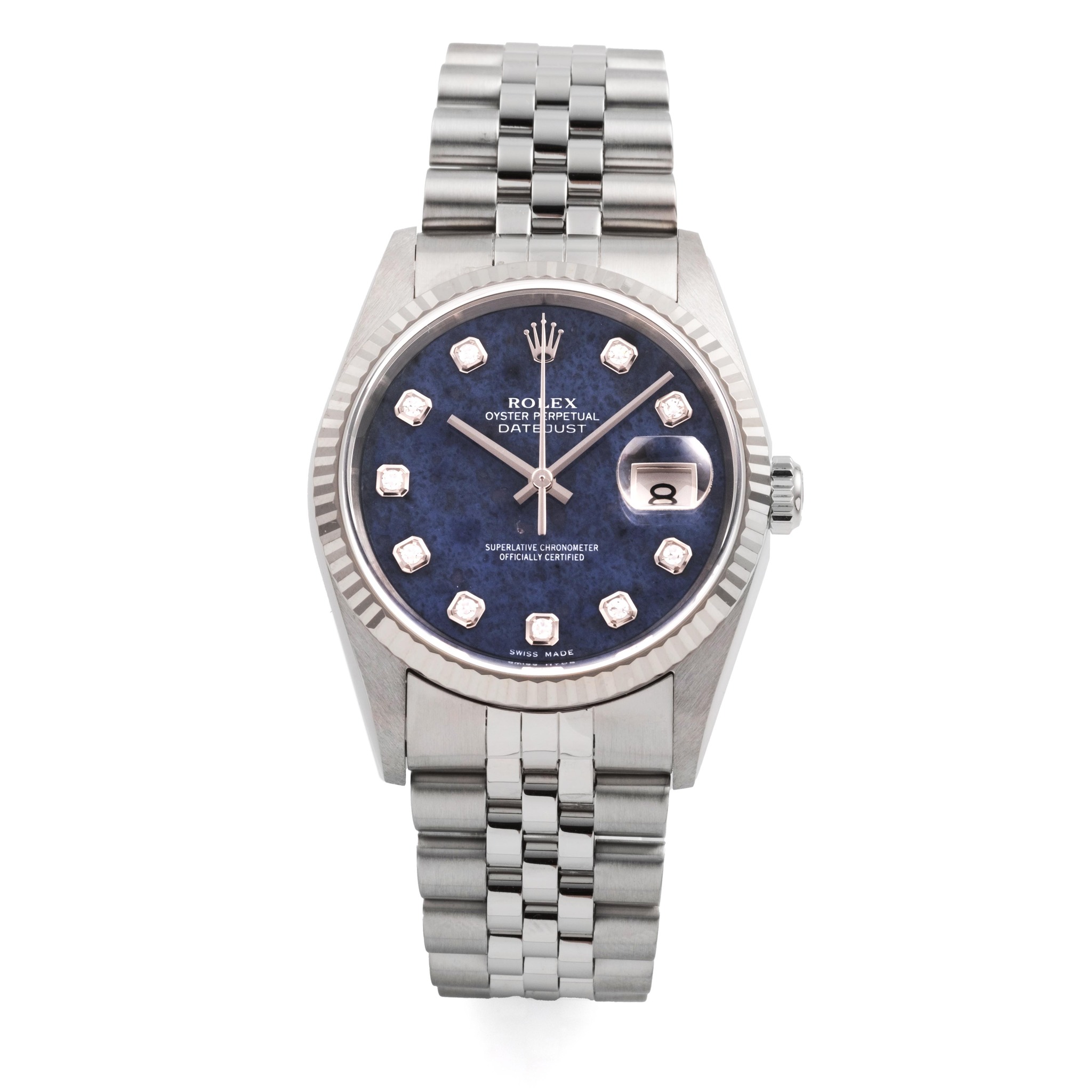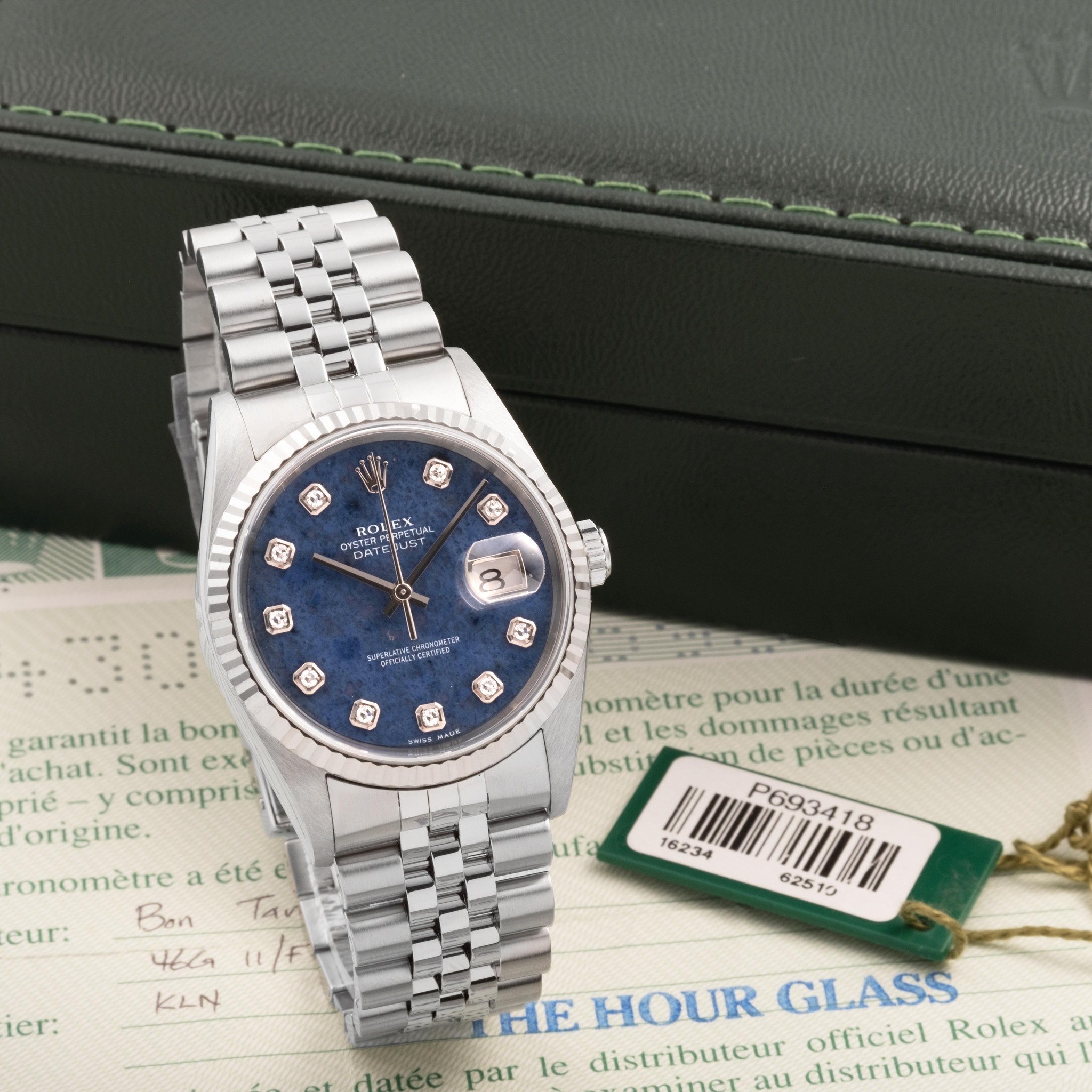 ROLEX, SWITZERLAND, REF. 16234, DATEJUST, DIAMOND INDEX SODALITE DIAL, STAINLESS STEEL