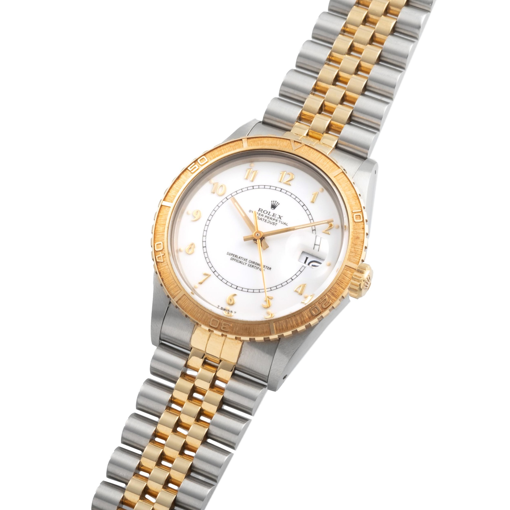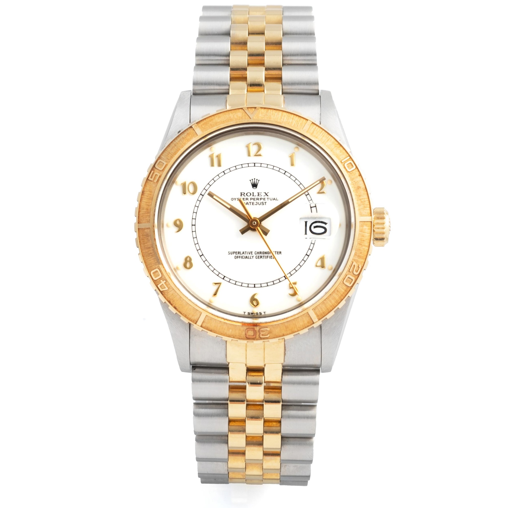 The Reference 16253 “Thunderbird” represents one of the most distinctive interpretations of the classic Datejust, distinguished by its rotating 18K yellow gold bezel, a feature inherited from the Turn-O-Graph models adopted by the U.S. Air Force Thunderbirds squadron. Elegant yet inherently functional, it blends the versatility of a sports watch with the refined architecture of the Datejust line.