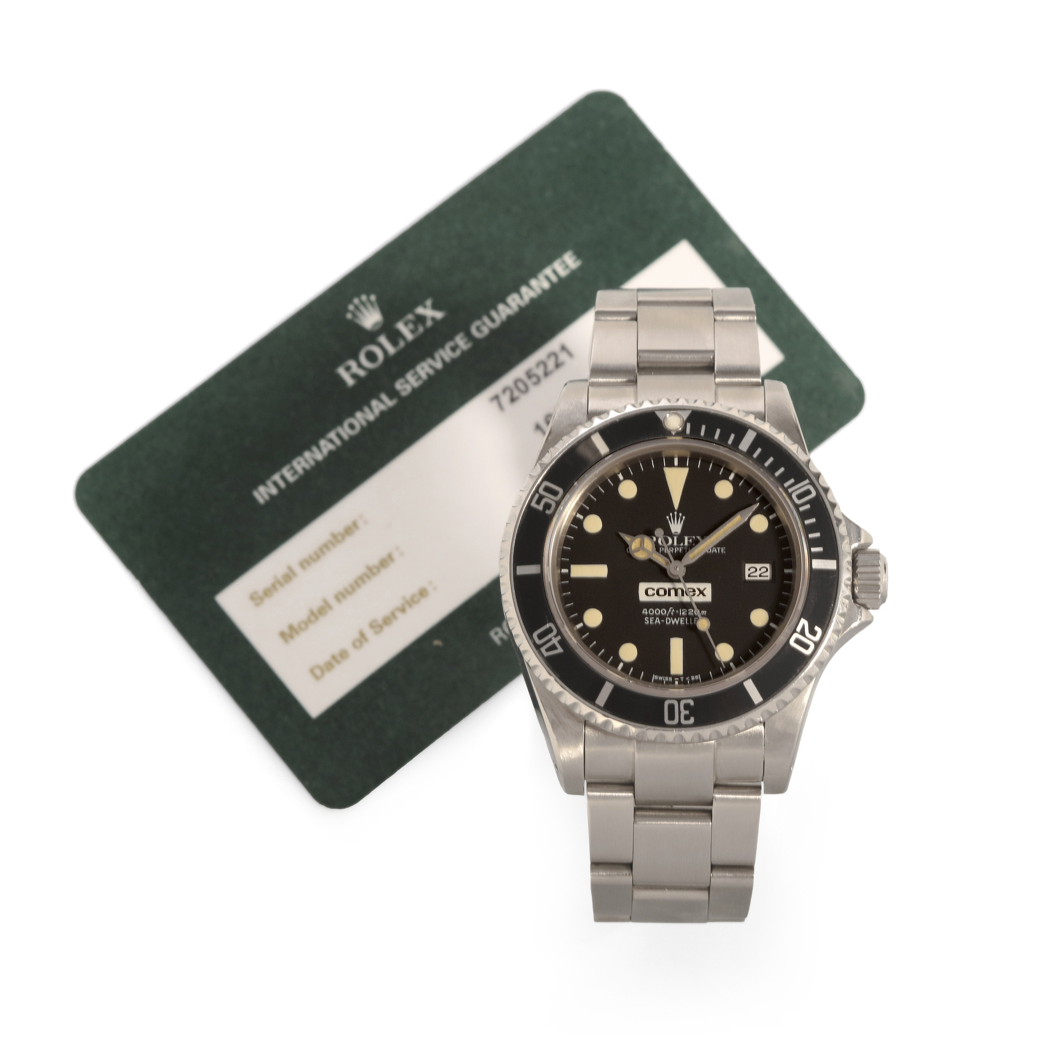 A fine and extremely rare stainless steel diver’s wristwatch with black matte dial, date and comex signature, made for the compagnie maritime d’expertises with rolex service card from 2012 and a calendar, self winding