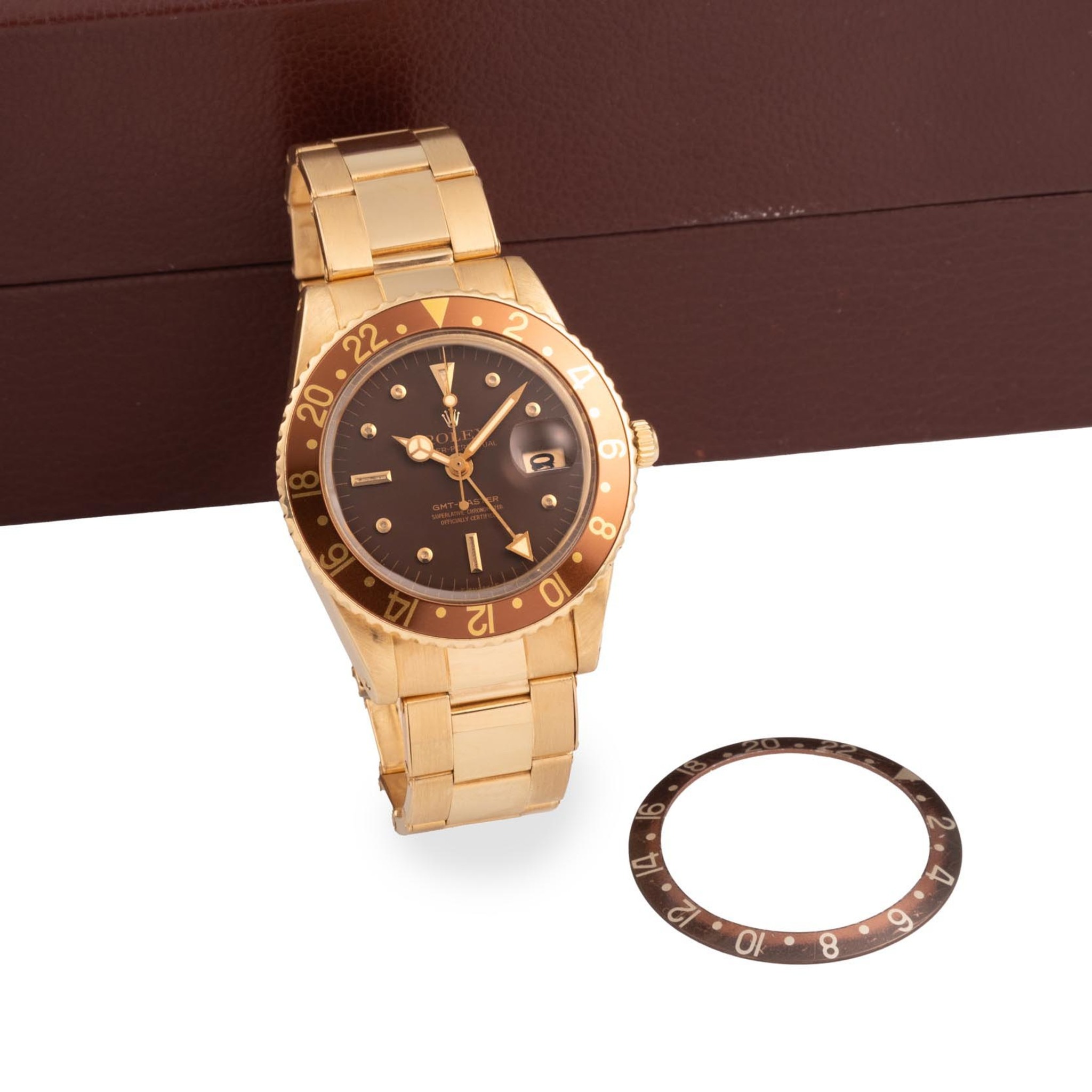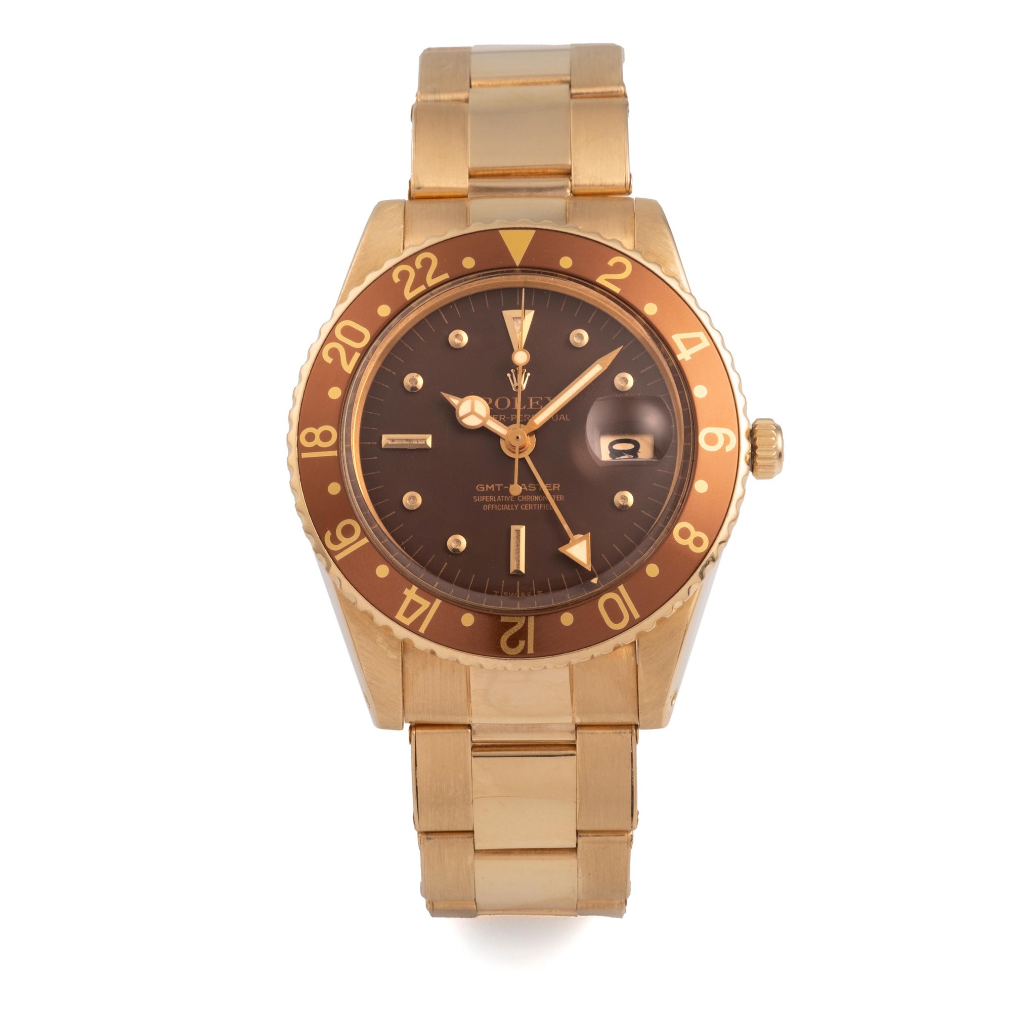 ROLEX, SWITZERLAND, REF. 1675, GMT-MASTER, NO CROWN GUARD, 18K YELLOW GOLD