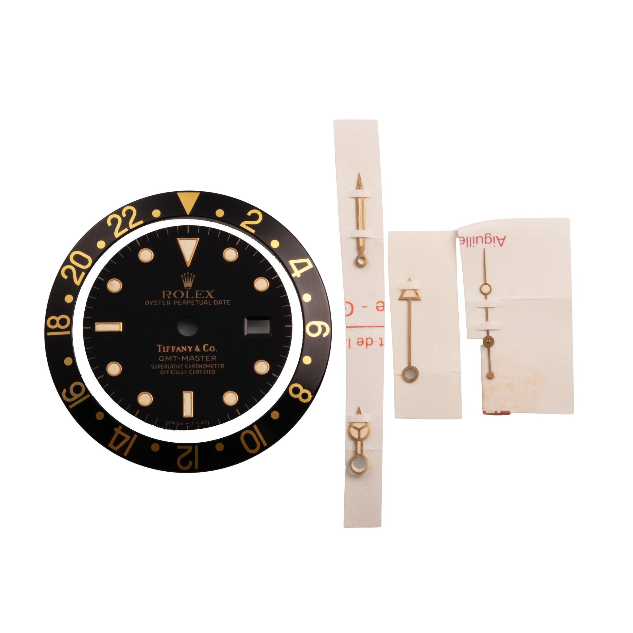 A fine, brass black dial for a Gmt Master, retailed by Tiffany & Co. with hands