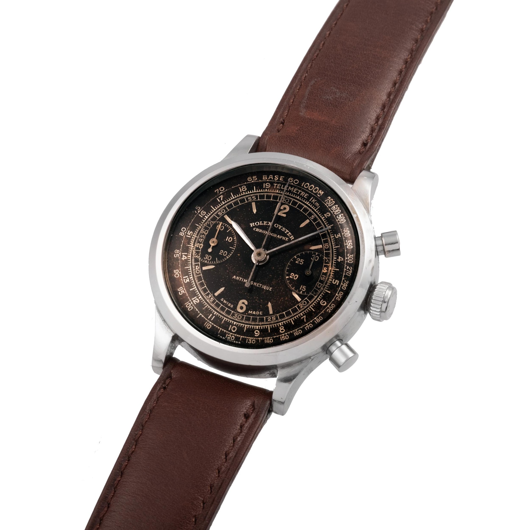 ROLEX, SWITZERLAND, REF. 3525, "MONOBLOCCO", CHRONOGRAPH, BLACK TROPICAL DIAL, STAINLESS STEEL
