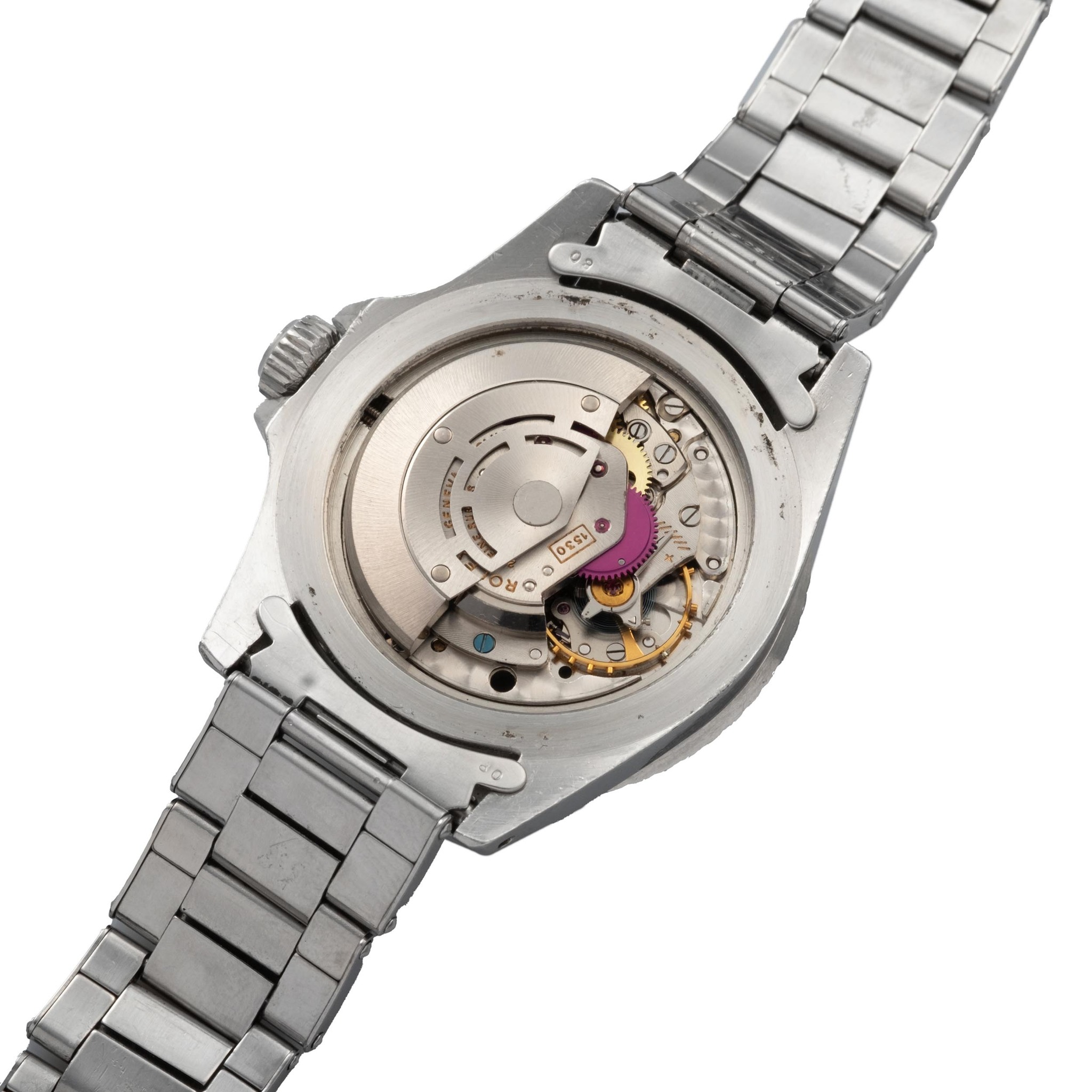 Its caseback, correctly stamped III.63, situates the watch firmly within the most desirable production window for underline dials, strengthening its historical significance. Complementing the ensemble is a riveted Rolex Oyster bracelet reference 7206, with correct 80 end links and a clasp stamped 4.66, a fitting and period-appropriate accompaniment that enhances the authenticity of the piece.