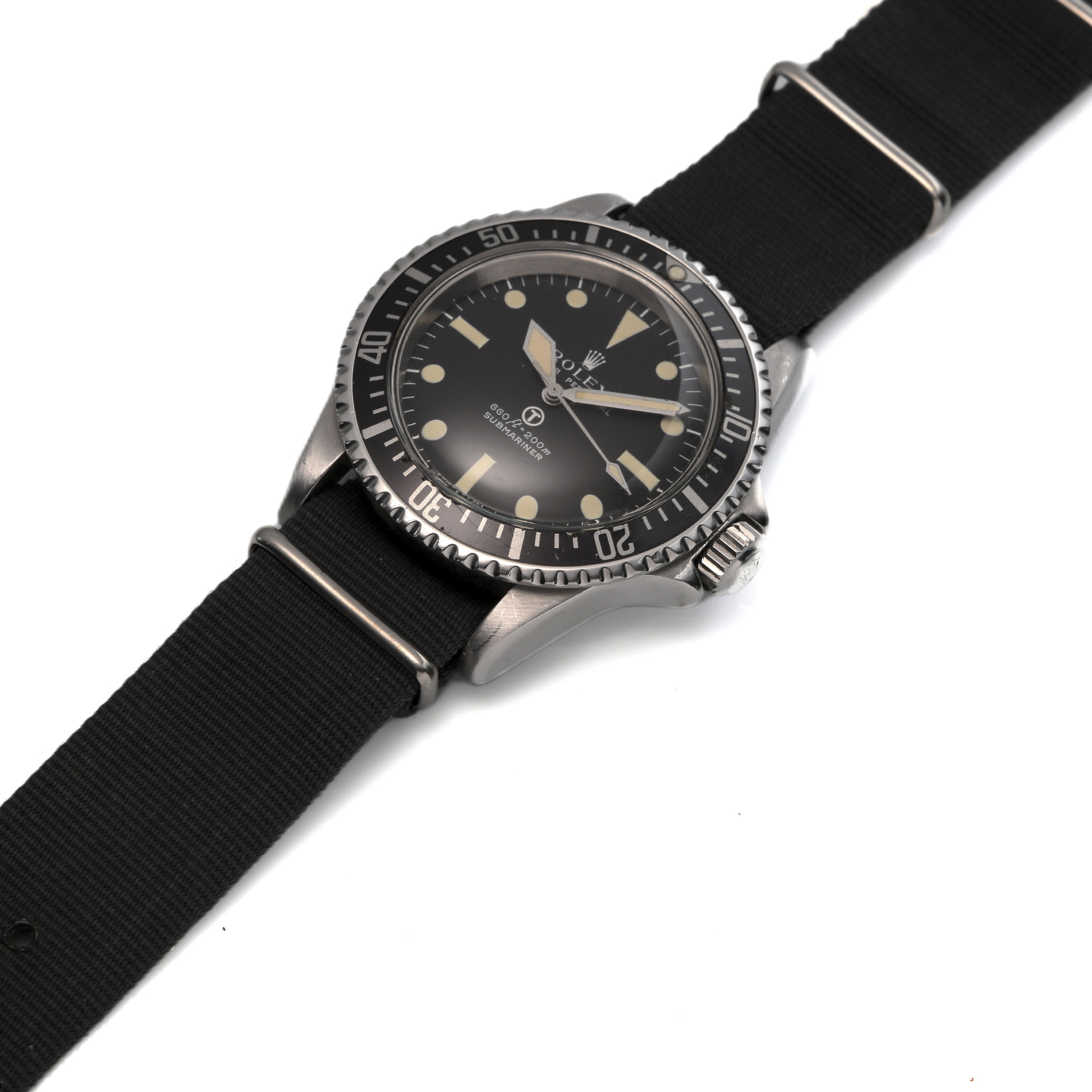 The present watch belongs to this narrow and coveted family of timepieces and displays the defining features with exceptional clarity. Its matte dial, marked by MOD-spec tritium, retains the authoritative simplicity that characterizes military Rolex production, while the hands and bezel reflect the functional aesthetic of the period. These attributes underscore the watch’s purpose-built origins, conceived not as a luxury object but as an indispensable instrument for divers, clearance specialists and naval personnel working in some of the most demanding conditions of the late twentieth century.