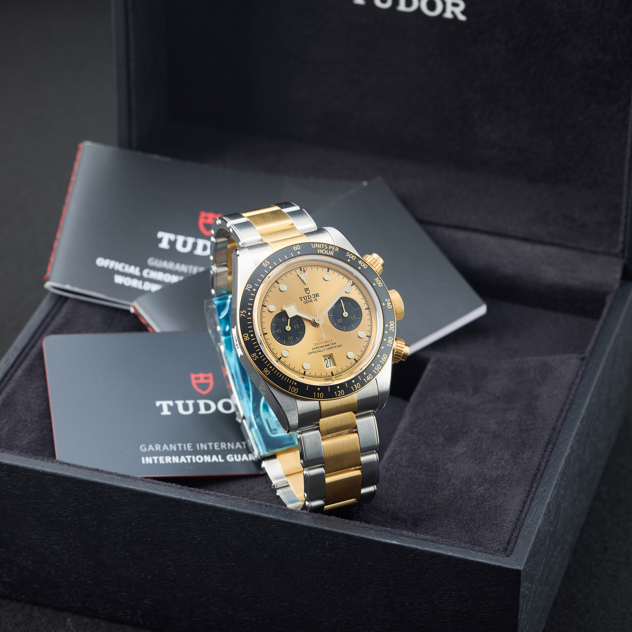 TUDOR, REF. 79363N, BLACK BAY CHRONO, UNWORN WITH FACTORY STICKER, AUTOMATIC, STAINLESS STEEL AND YELLOW GOLD