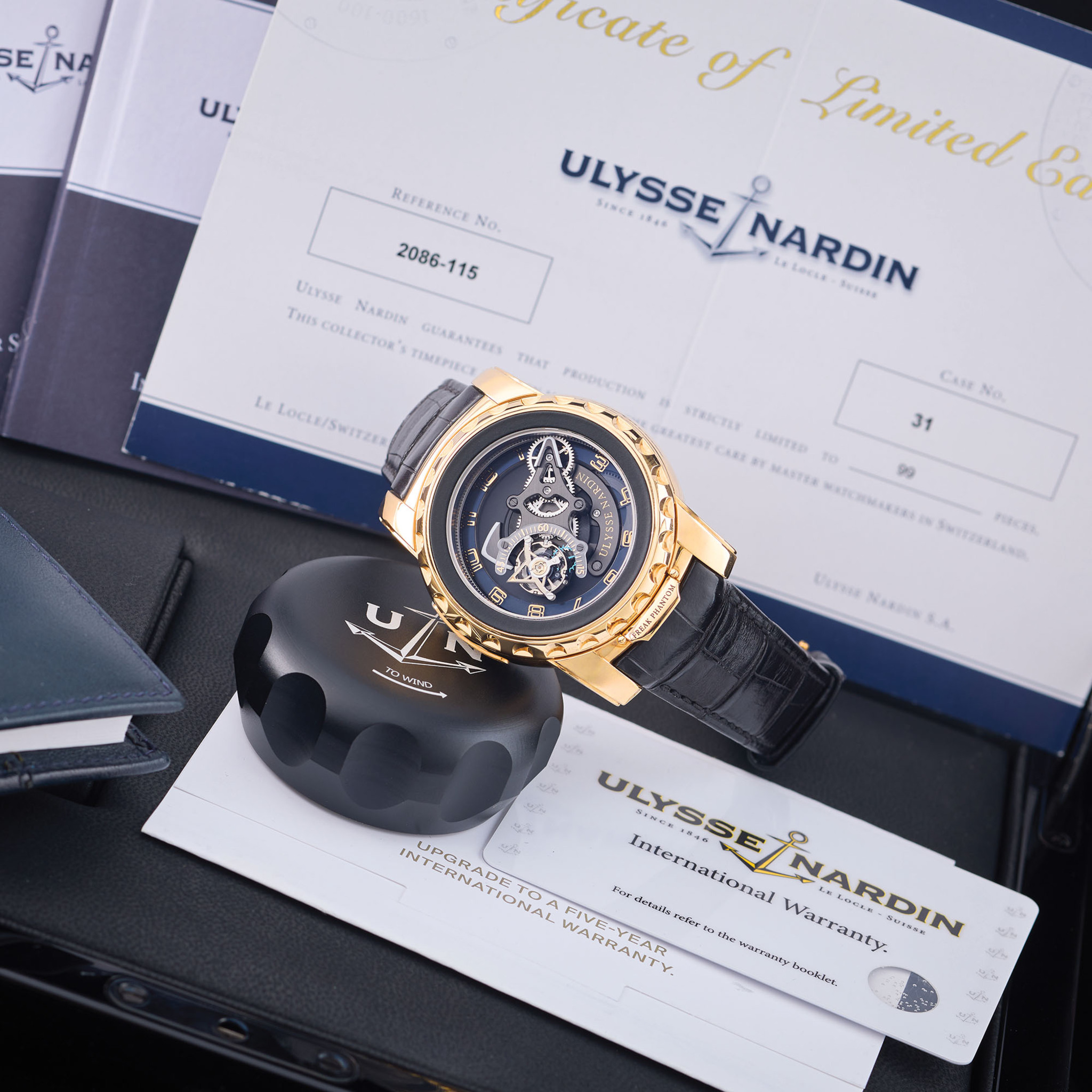 Accessories UN fitted box, certificate of limited edition, warranty card dated 2017, instructions booklet, round winding key.