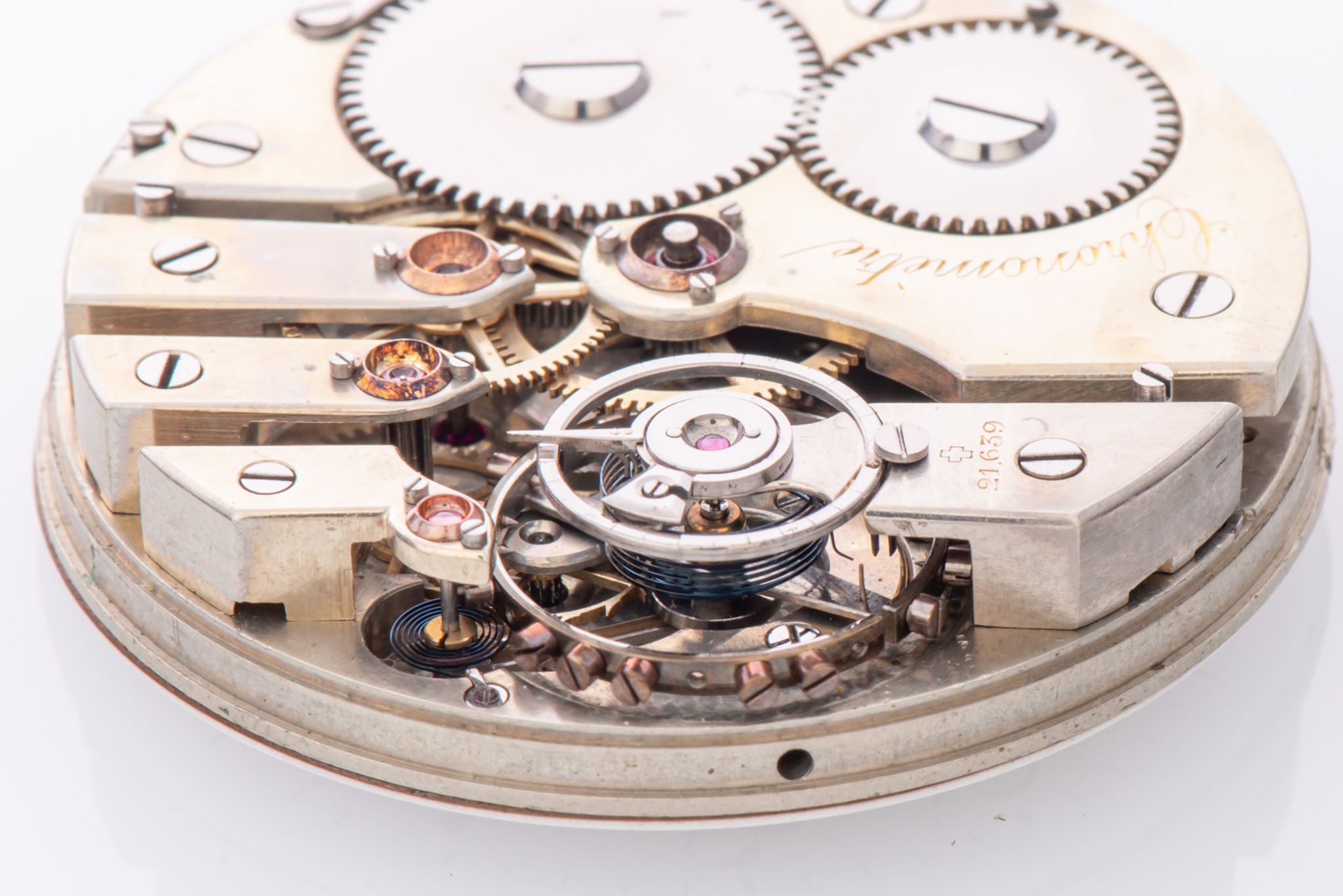 Caliber 20’’’, pivoted detent escapement, cylindrical hairspring, patented regulator