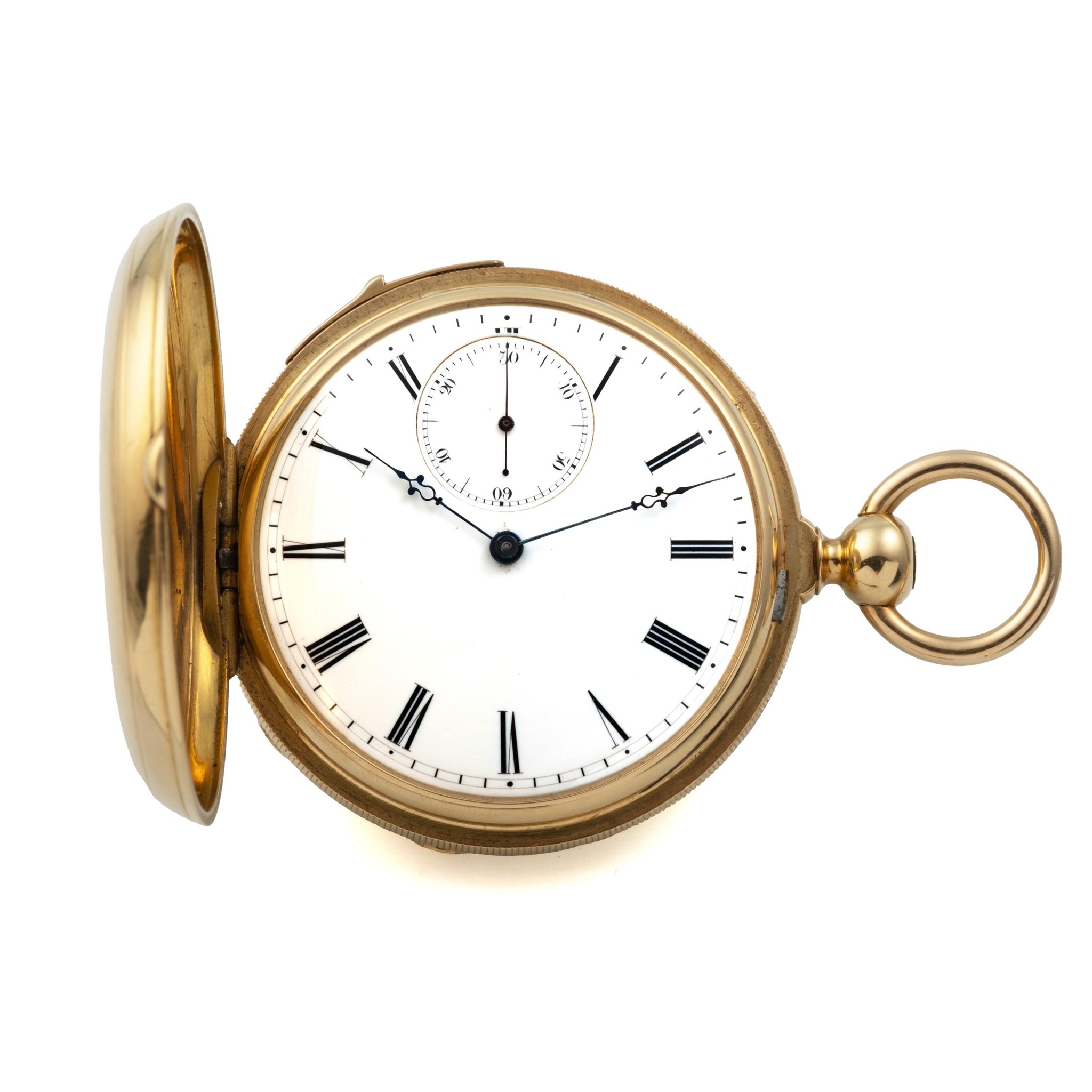 UNSIGNED, SWITZERLAND, HALF HUNTING CASE, QUATER REPEATER, 18K YELLOW GOLD