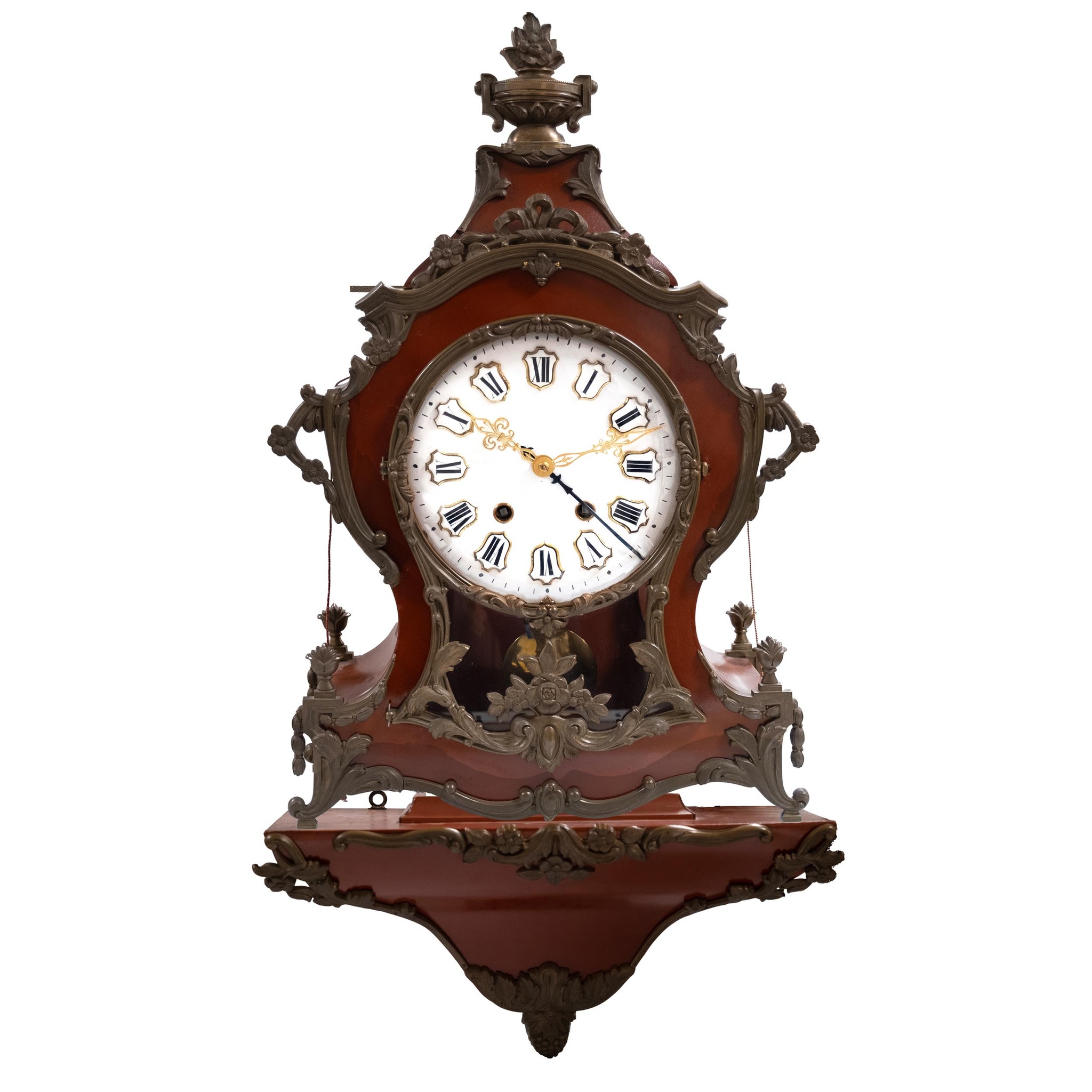 Caliber Rectangular brass, 8 days going barrels, rack striking on two gongs by two hammers, striking works set on the back plate, pull repeat by a cord protruding.