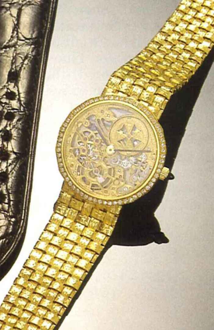 Vacheron & Constantin, Genève, No. 746927, case No. 586995, 1980 's. Fine and attractive skeletonized, 18 ct. gold and diamonds Iady's wristwatch with a very unusual gold bracelet.