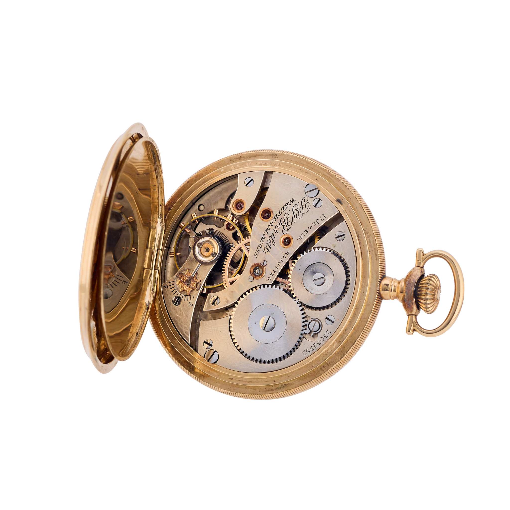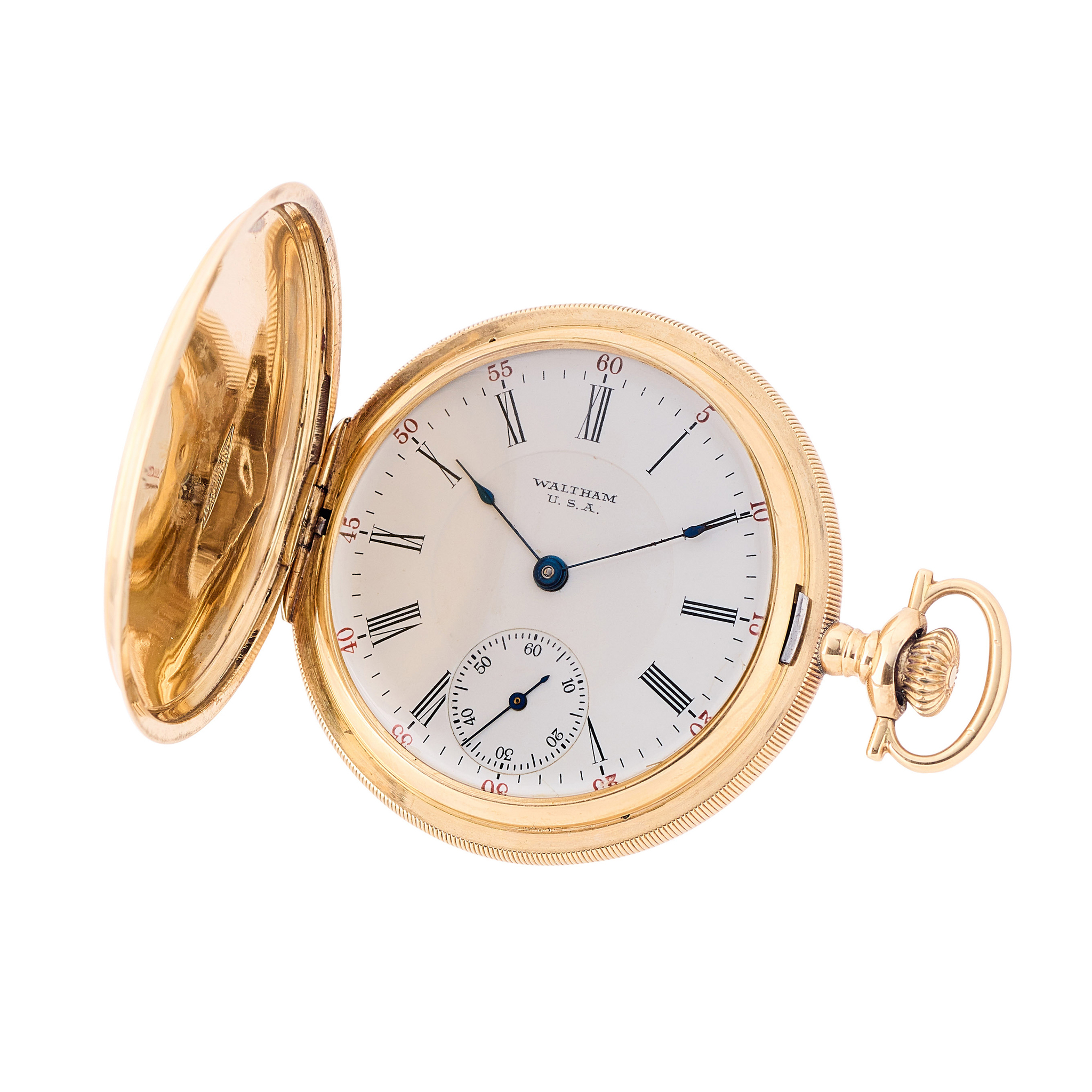 WALTHAM WATCH CO., HUNTING CASE, POCKET WATCH, ENAMEL, 14K YELLOW GOLD