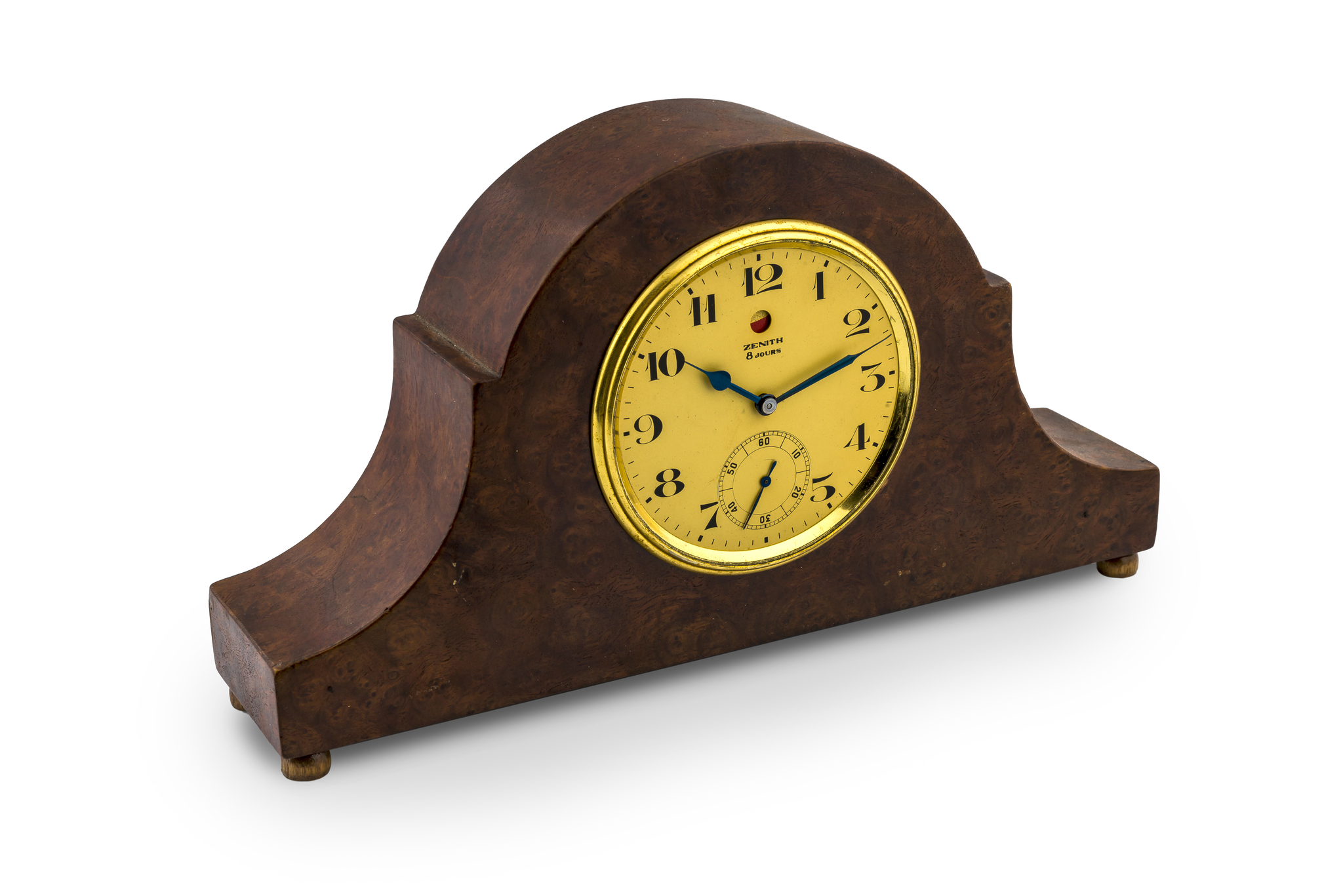 ZENITH, 8 DAYS TABLE CLOCK A fine, manual wind, wood and brass 8 day going clock with power reserve indicator.