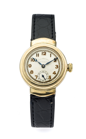 Caliber 10’’’, gilded brass, straight-line equilibrated lever escapement, à moustaches; with stainless steel protective dust cap