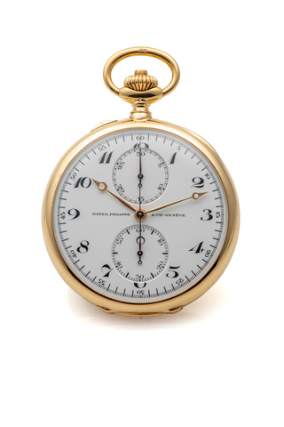 PATEK PHILIPPE, CHRONOGRAPH COUNTER, BREGUET ENAMEL DIAL, MADE FOR BEYER, ZURICH, YELLOW GOLD