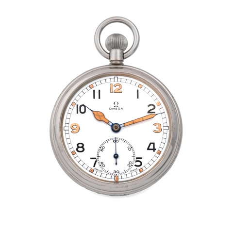 A fine and attractive, well-preserved, nickel plated, manual wind military pocket watch with radium dialGrading System: A
