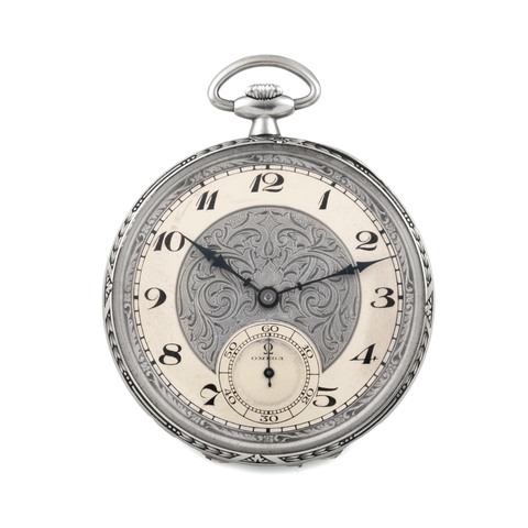 A very fine and elegant, 18k white gold, manual wind open face, engraving silvered dial with subsidiary seconds at 6 o'clock.