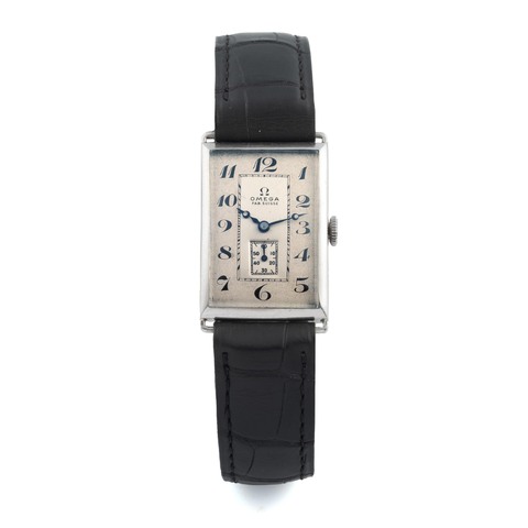 A fine and very rare, platinum, manual wind rectangular wristwatch