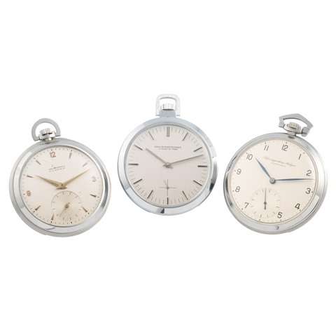 A fine and unusual stainless steel, manual wind open-face, keyless-winding, pocket watches, from : 1) ECOLE DE MICROTHECHNIQUE DE LA CHAUX-DE-FONDS, 2) ECOLE PROFESSIONNELLE DE LA VALLEE DE JOUX, 3) ATELIER D'APPRENTISSAGE D'HORLOGERIE DE PORRENTRUY