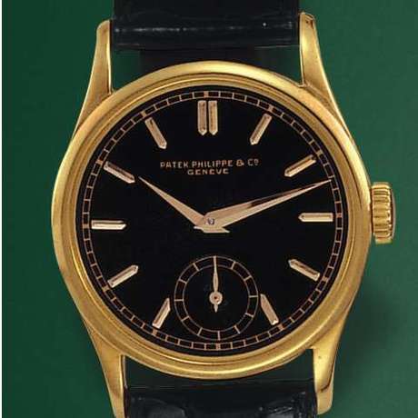 C. three-body, solid, polished and brushed, flat bezel, concave lugs. D. black with applied yellow gold indexes, auxiliary seconds dial. "Dauphine" yellow gold hands. M. Cal. 12 '''120, rhodium-plated, "fausses-côtes" decoration, 18 jewels, straight line lever escapement, monometallic balance adjusted for heat, cold, isochronism and 5 positions, self-compensating Breguet balance-spring, micrometer regulator.Dial, case and movement signed.Diam. 30 mm.