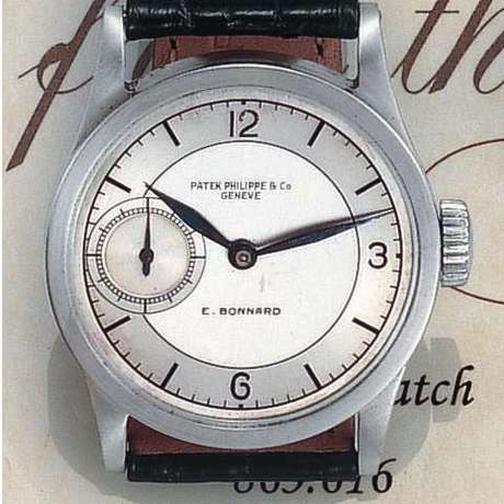 C. two-body, solid, polished and brushed, flat bezel, concave lugs. D. matte silver with applied white gold indexes, auxiliary seconds dial. ?Dauphine? white gold hands. M. Cal. 215, stamped with the Geneva Quality Hallmark, rhodium-plat-ed, ?fausses côtes? decoration, 18 jewels, lever escapement, Gyromax balance adjusted for heat, cold, isochronism and 5 positions, shock-absorber, self-compen-sating free-sprung balance-spring. Dial, case and movement signed. Diam. 31 mm.