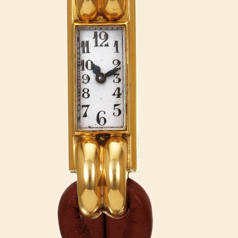 C. Two-body, rounded bezel with a champlevé enamel inlay of dark blue flowers and green leaves on the top and surrounded at each side by a chased gold flower and with an inlaid black enamel line at the case sides, back decorated with engine-turned checkerboard pattern, band and bowdecorated to match, with an extended rectangular en suite insert. Gilt bowwith black enamel inlay. D. Two-tone silvered with painted black ?Greek? numerals, outer minute track, subsidiary seconds. Blued steel ?cathedral? hands. M. Fabriqué à Genève, Cal. 35 ML, rhodium-plated, 16 jewels, straight-line lever escapement, monometallic balance, cut bimetallic compensation, blued steel Breguet balance spring. Dial, case and movement signed. Dim. 41.8 x 45 mm. Thickness 7.8 mm. Property of an Italian Collector