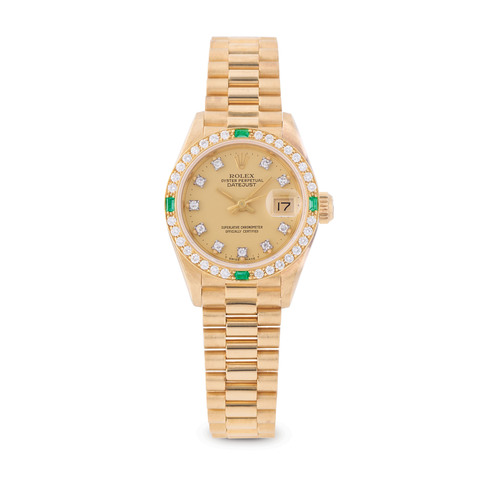 ROLEX, REF. 69078, DATEJUST, 18K YELLOW GOLD, DIAMOND AND EMERALD